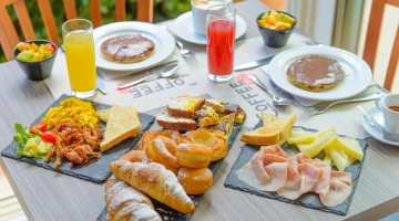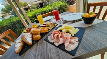 BREAKFAST: international buffet with homemade desserts, cheeses, cold cuts, coffee and cappuccino.