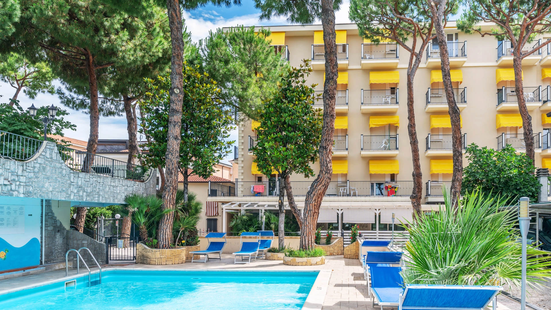 The hotel is located in Rimini, about a 7-minute walk from the beach. The historic center and Rimini train station can be easily reached by bus or Metromare in about ten minutes.