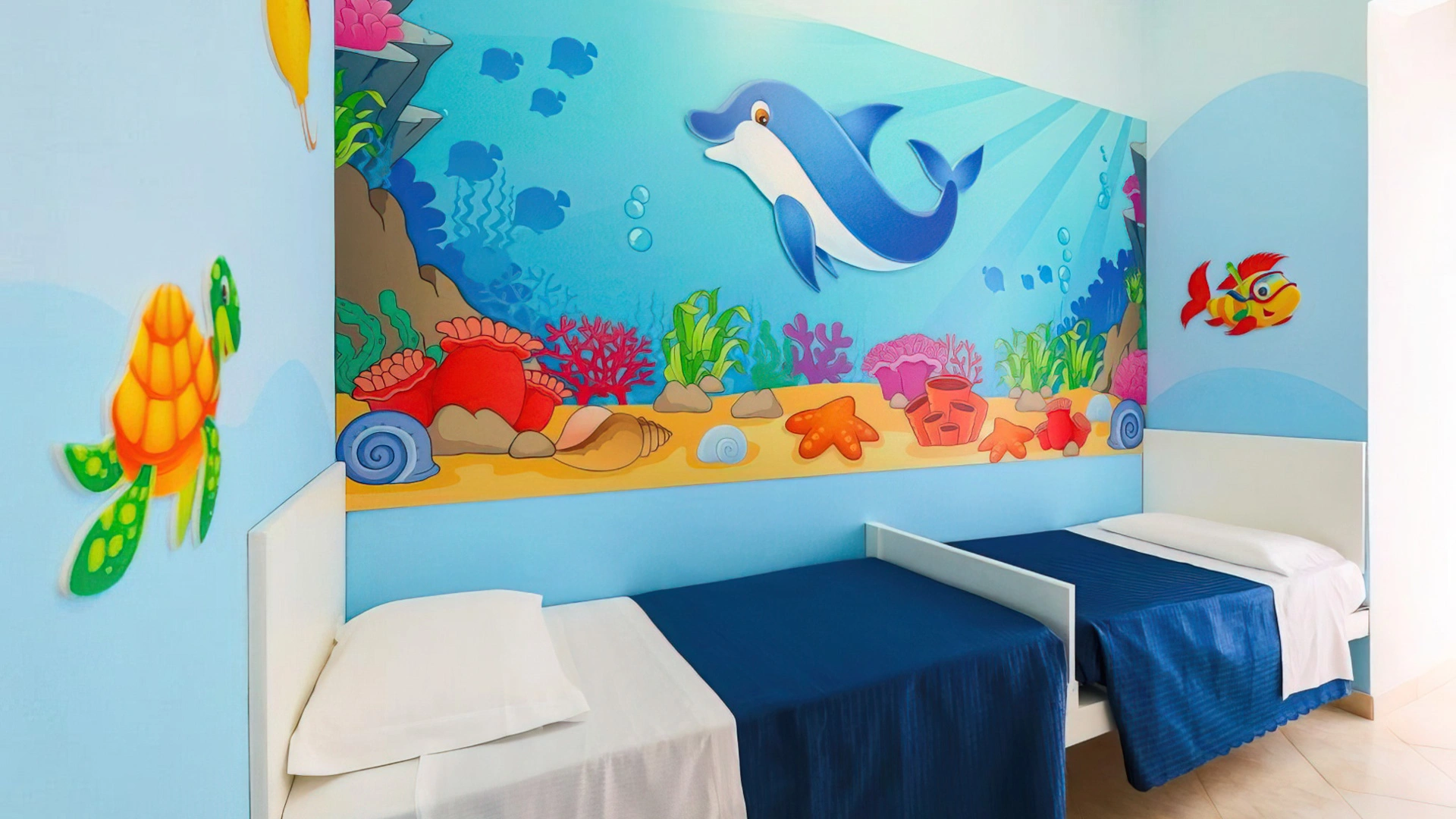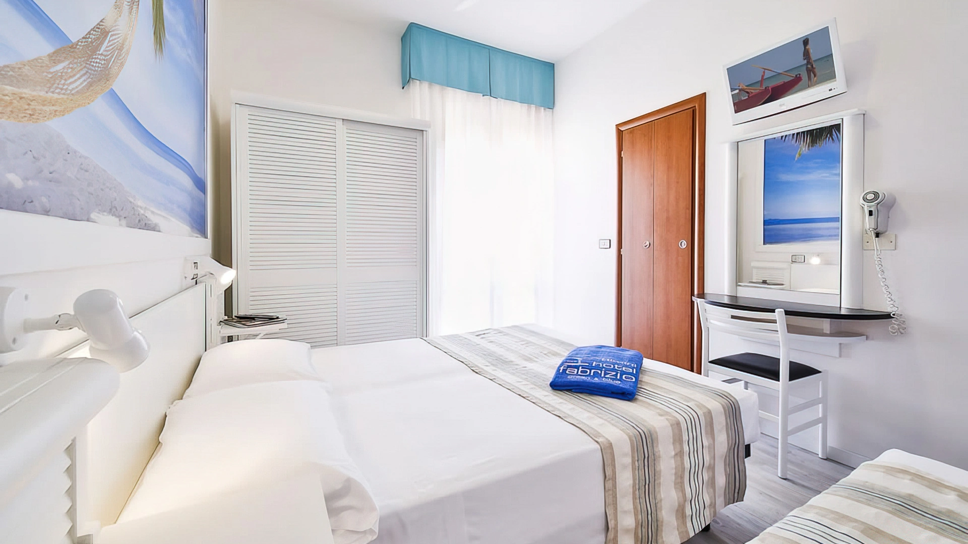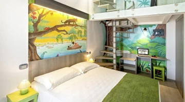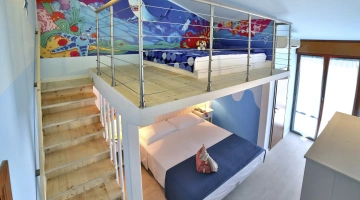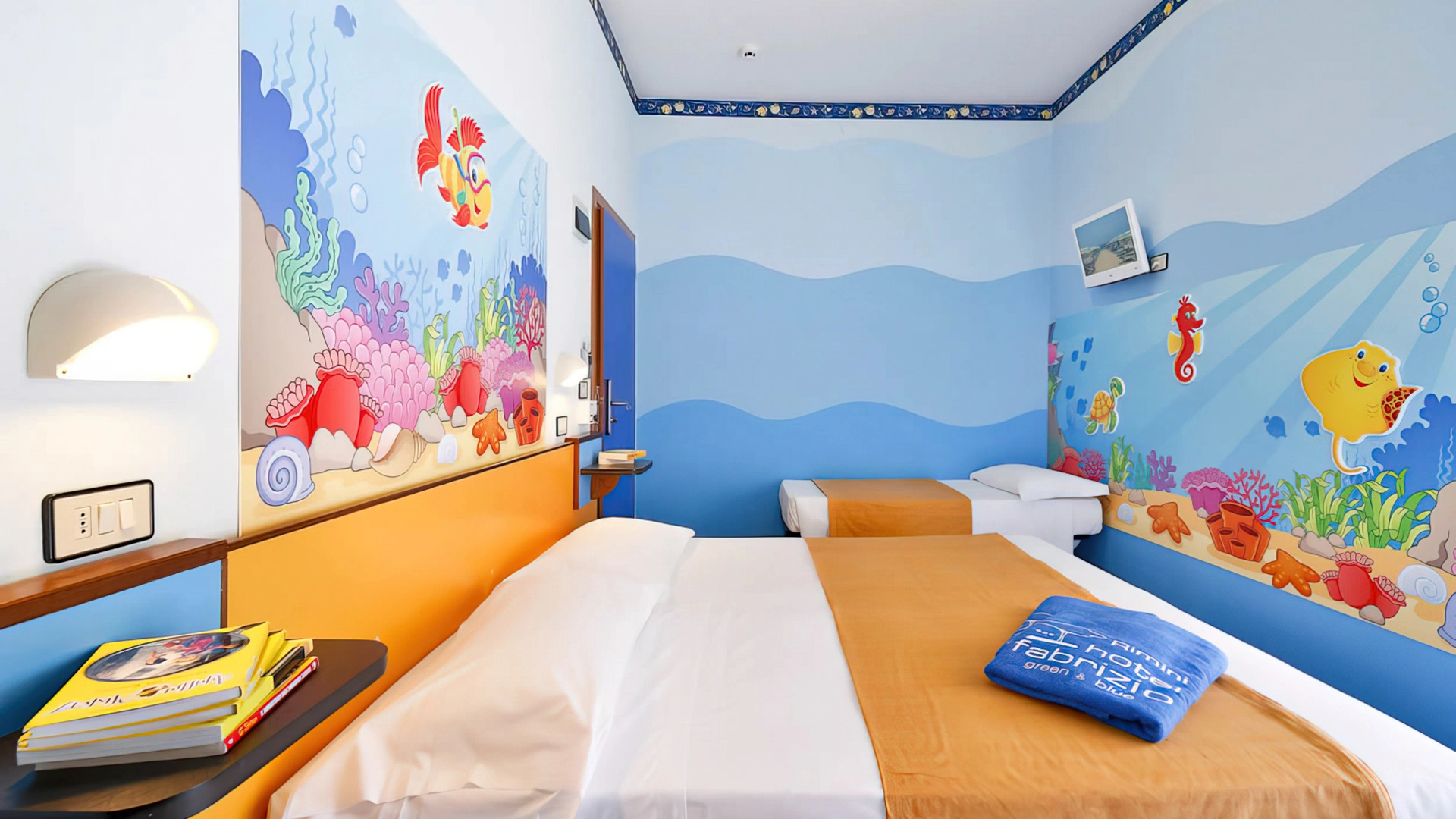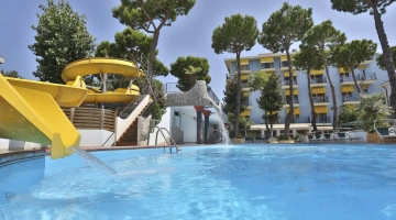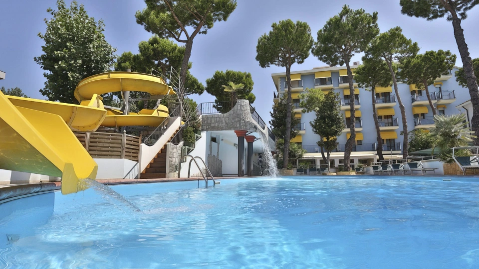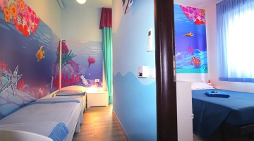 Hotel Fabrizio, a 3-star family hotel in Rimini, stands out for its swimming pool with water slide, themed rooms, outdoor play area and the many services for children it offers, including entertainment from 10 am to 11 pm and the Fantabriciola children's restaurant. Small pets are allowed.