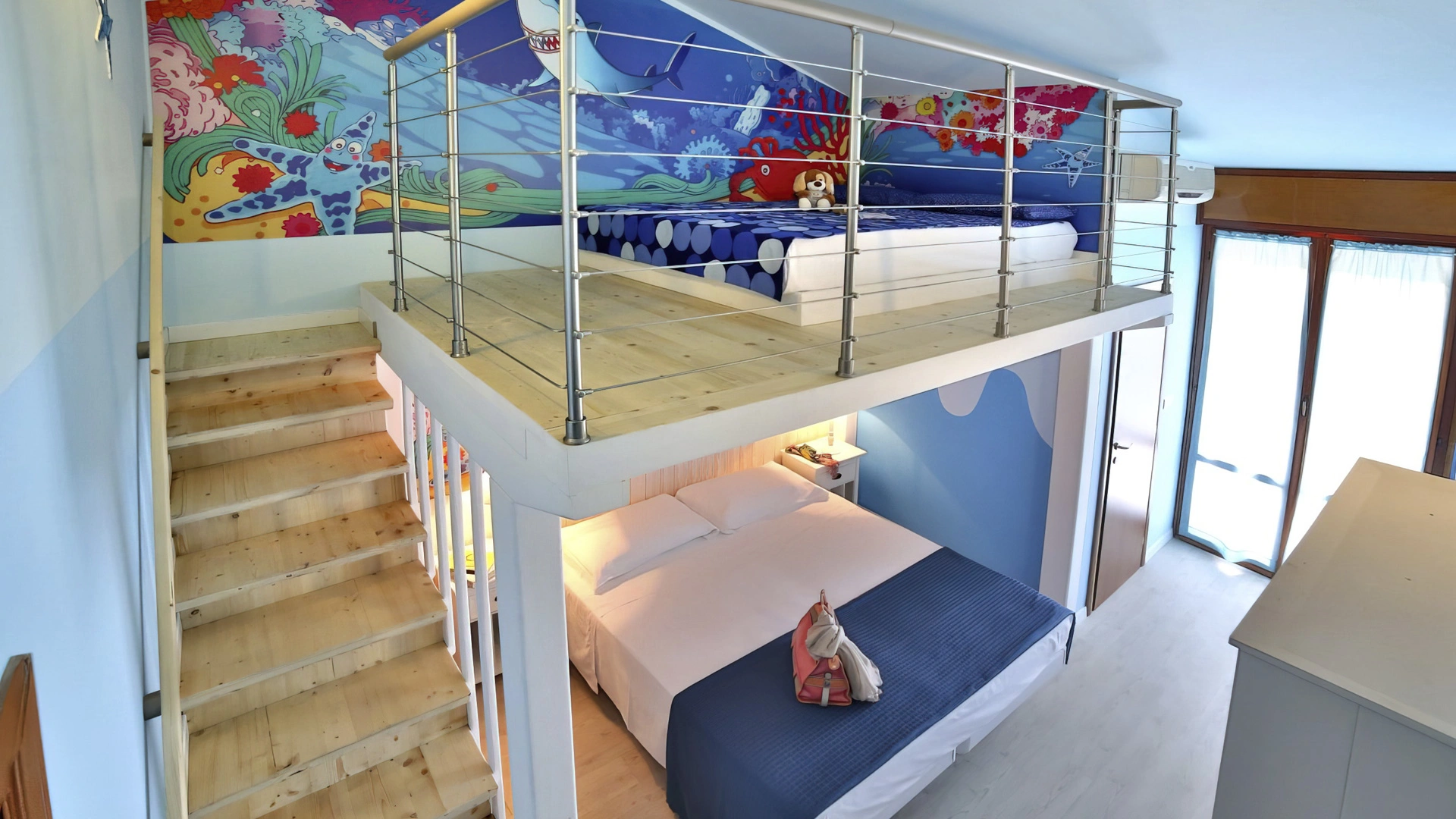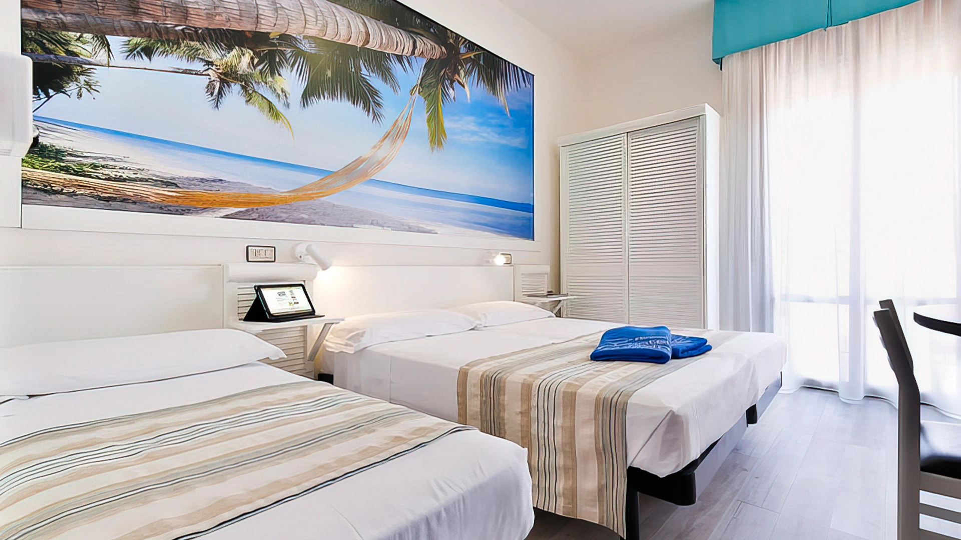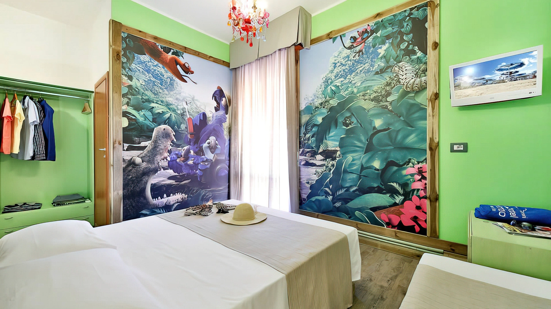 Hotel Fabrizio, a 3-star family hotel in Rimini, stands out for its swimming pool with water slide, themed rooms, outdoor play area and the many services for children it offers, including entertainment from 10 am to 11 pm and the Fantabriciola children's restaurant. Small pets are allowed.