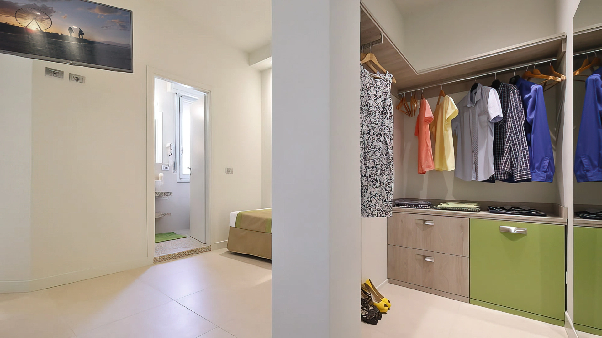 In the room: safety rails, cot on request, courtesy lights, toilet reducer, stool for the sink.