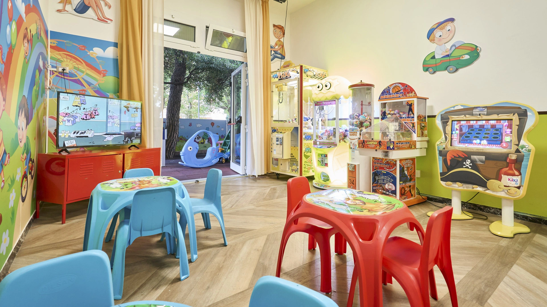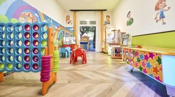 In the hotel: strollers, entertainment, outdoor and indoor play area, afternoon snack, bicycle seat, pediatrician on request.