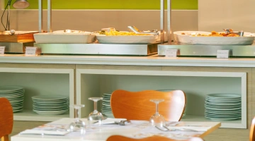 LUNCH AND DINNER: buffet dinner with dishes from Romagna, Mediterranean and international cuisine with a 3-choice menu, vegetarian options, homemade pasta and desserts. Lunch at a partner restaurant.
