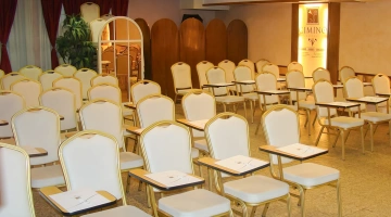 The hotel has three meeting rooms equipped with video projector, TV, Wi-Fi, telephone, large screen, overhead projector, microphones, audio system, air conditioning and independent heating. They can all be set up as a horseshoe, classroom, theatre, cocktail or single table.