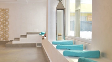 SUITES: they are located on the first floor and have a large 35 m2 terrace or on the fourth floor with hydromassage tub and balcony with sea view.