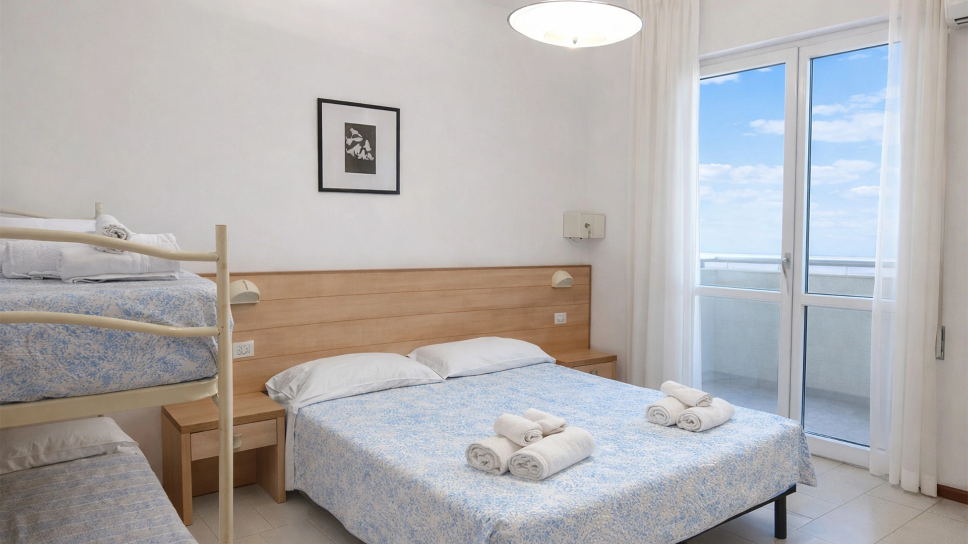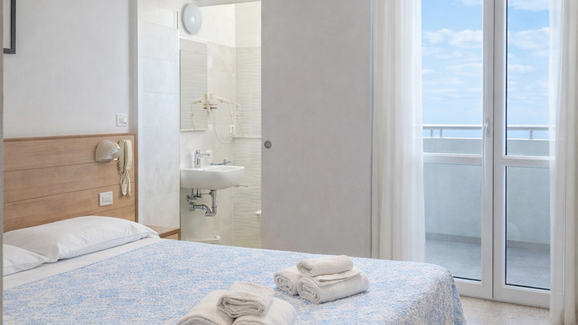 The rooms have a balcony (some with a side sea view), air conditioning, satellite TV, safe, bathroom with shower (box or curtain) and hairdryer.