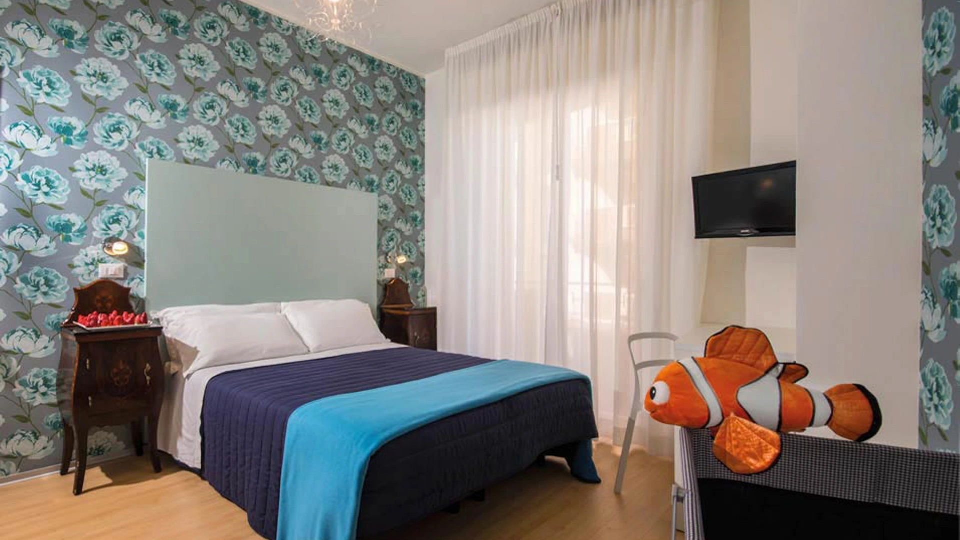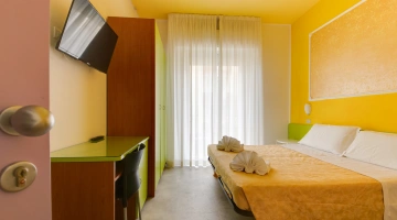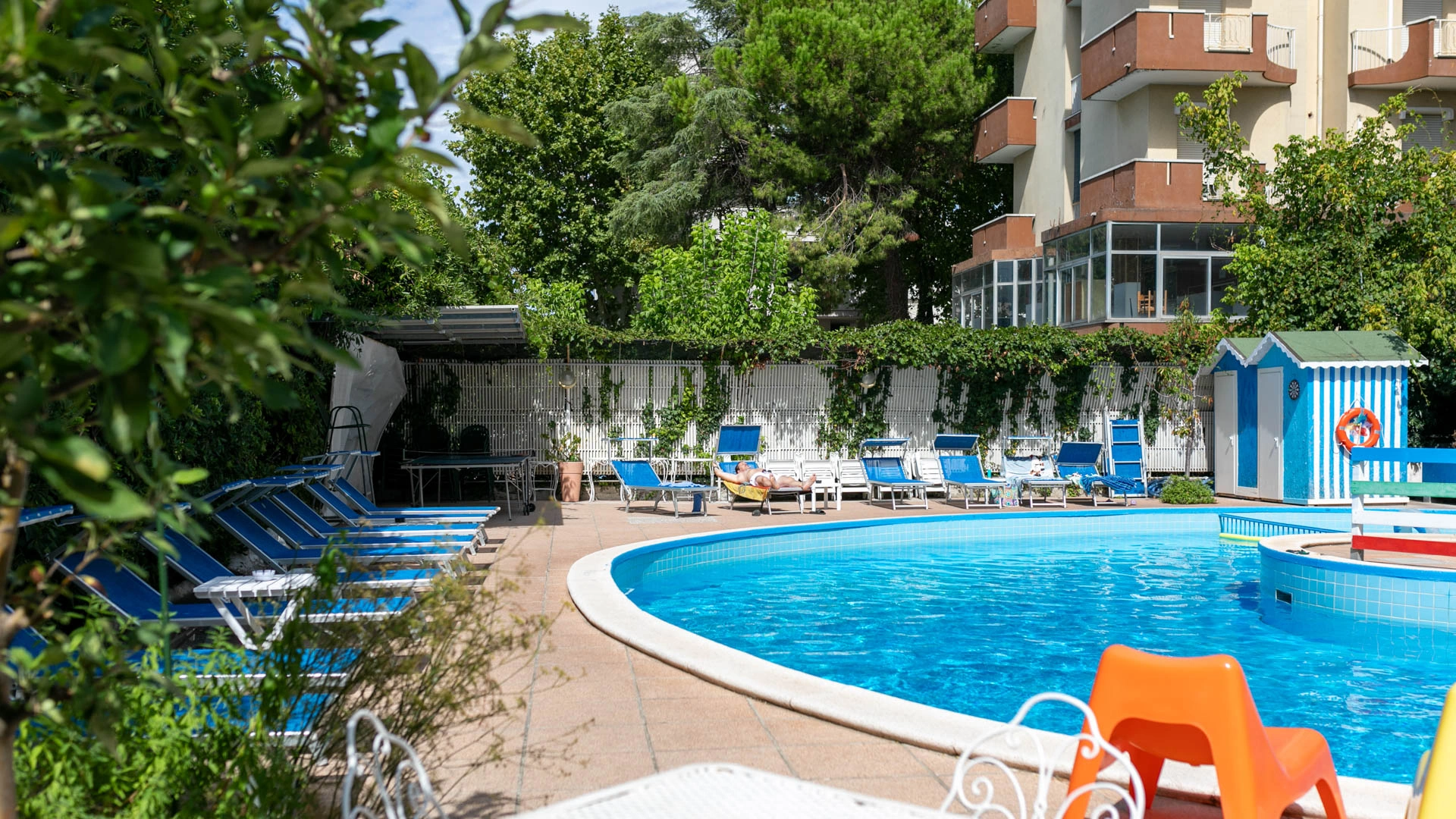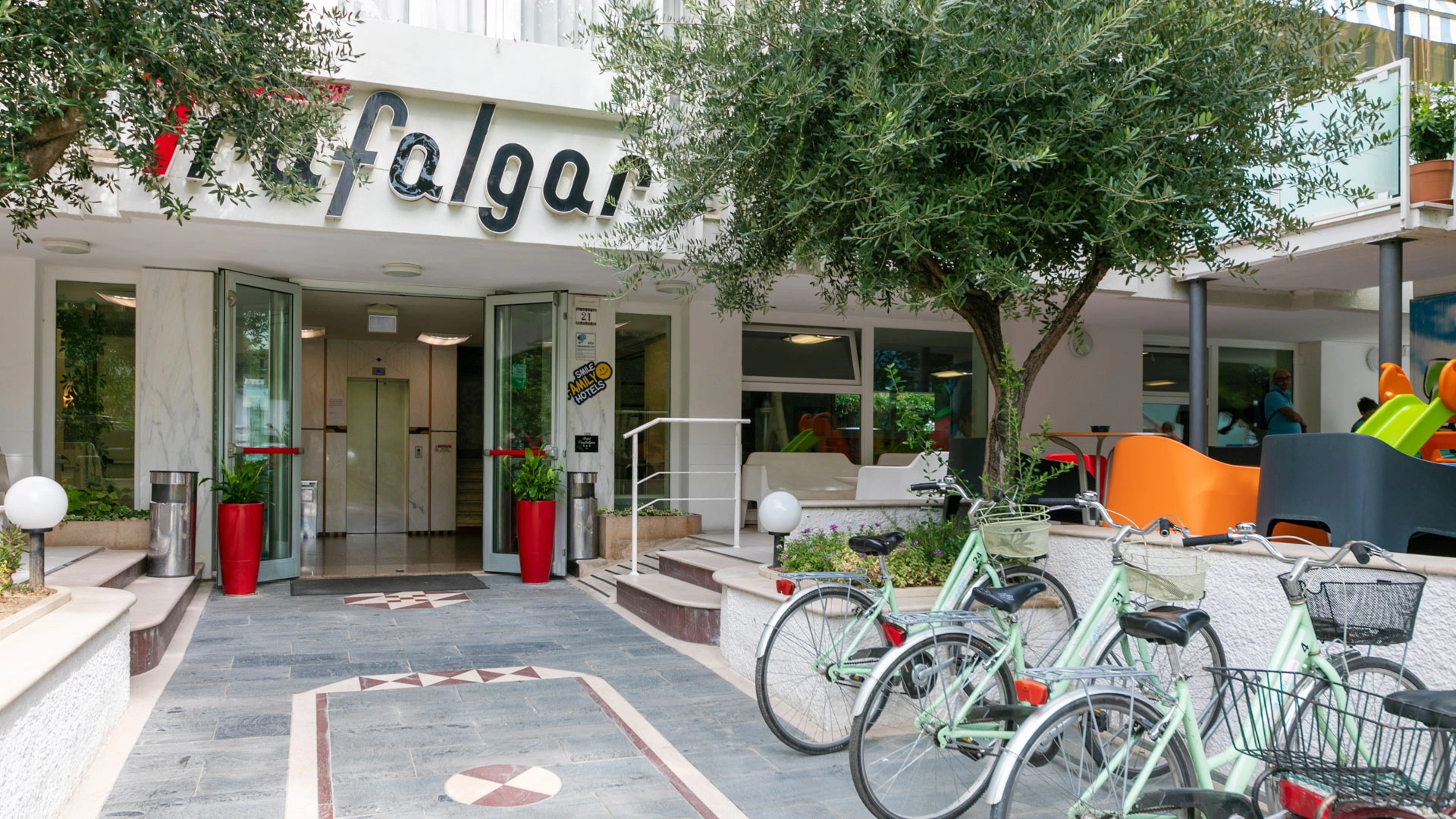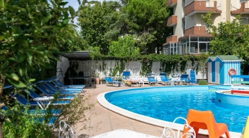 Hotel Trafalgar is a 3-star hotel located in Rivazzurra di Rimini near the sea. It features a large garden with a relaxation area, an outdoor pool, parking, fast Wi-Fi throughout, entertainment, and connecting rooms. Small pets are welcome upon request.
