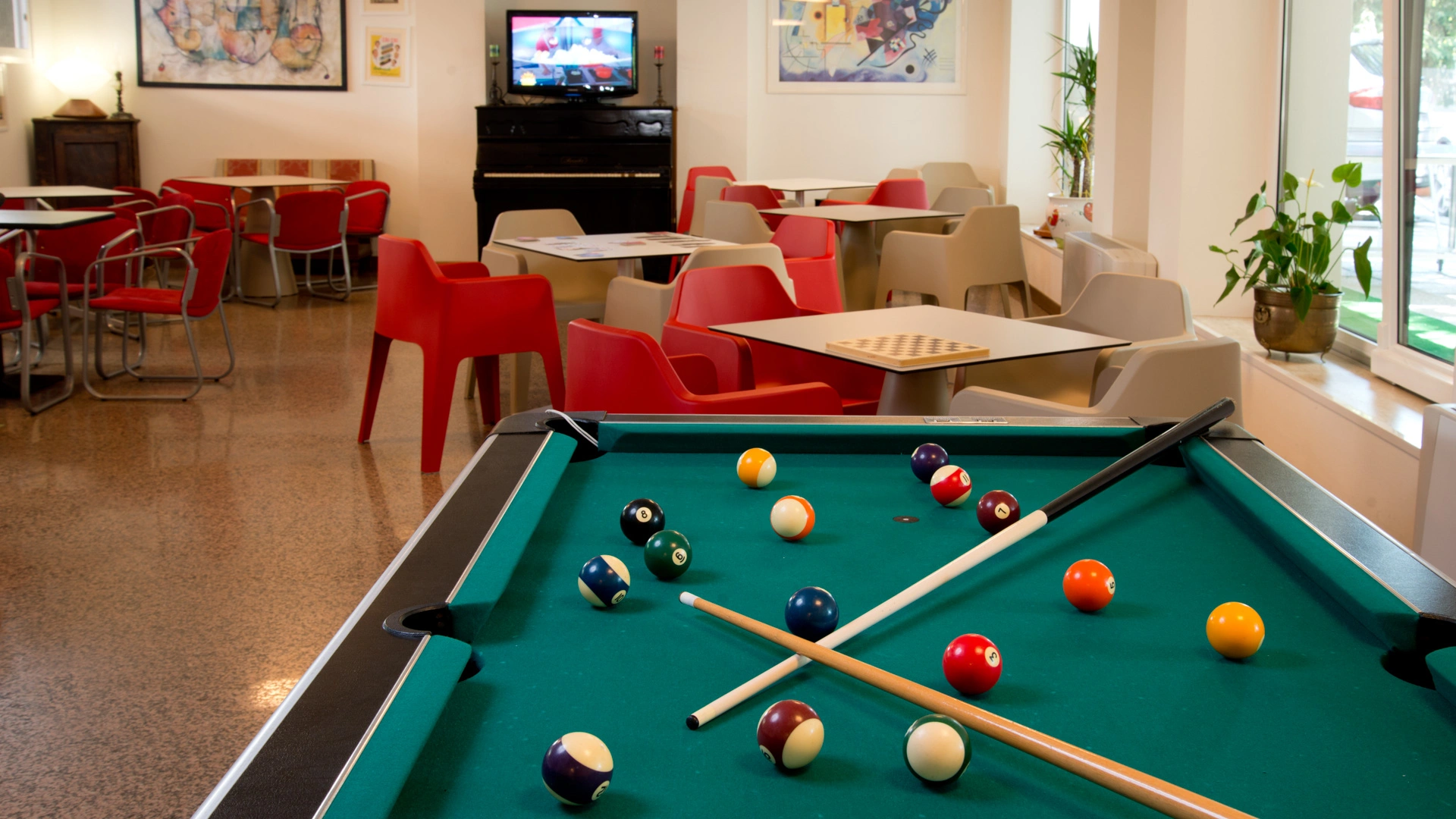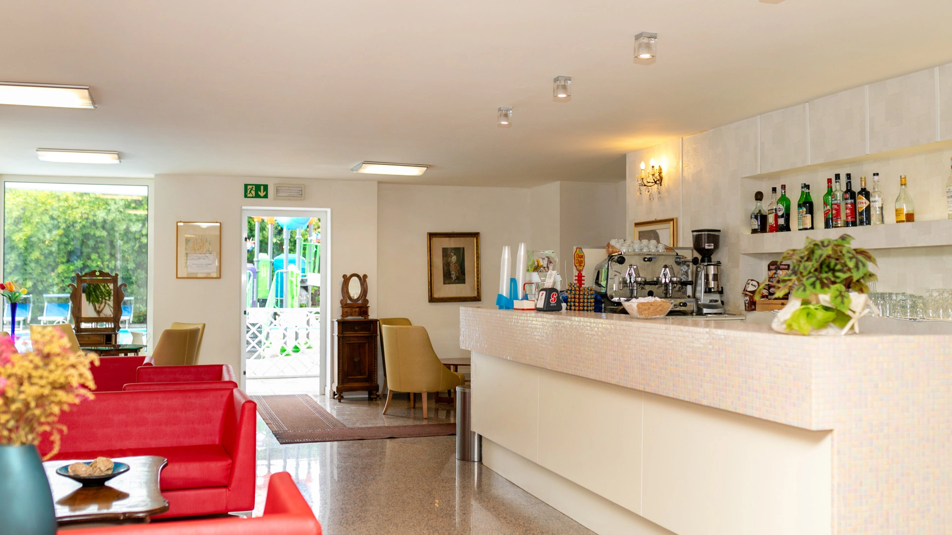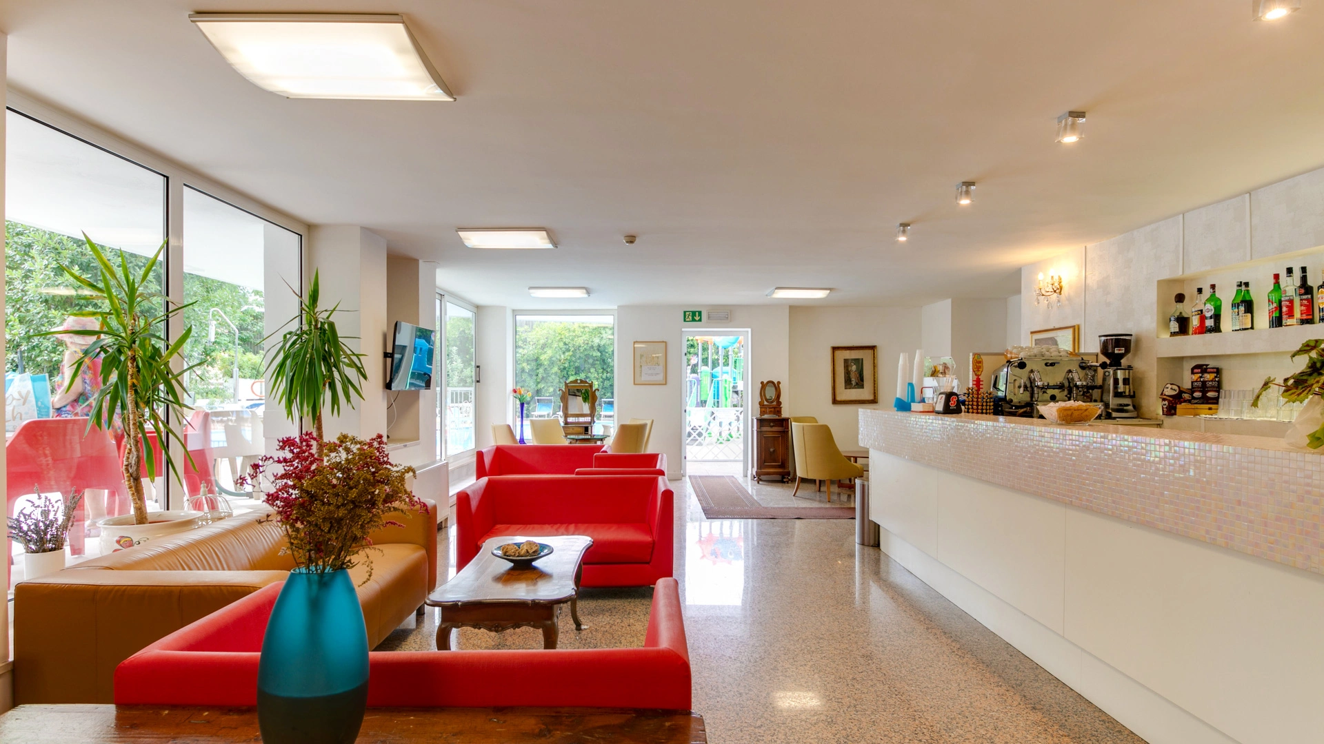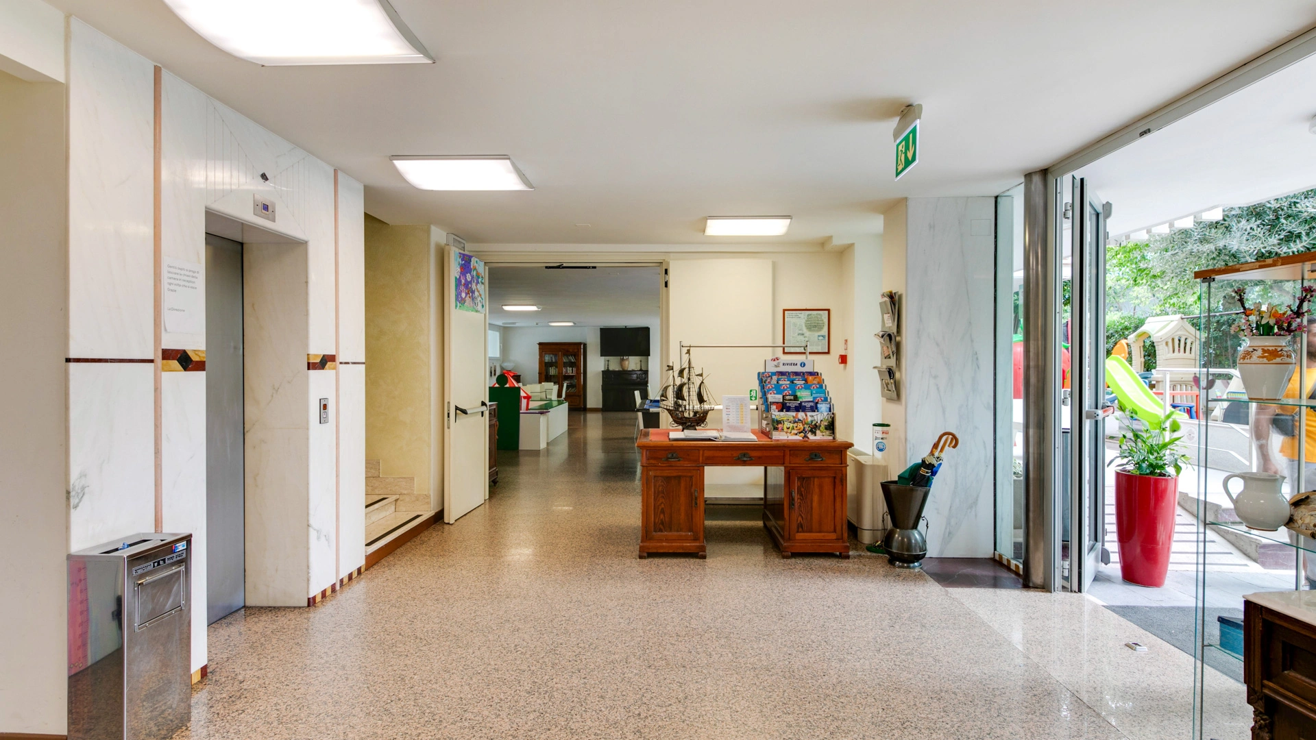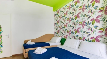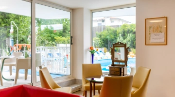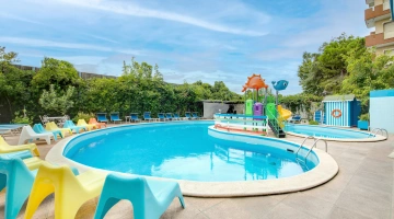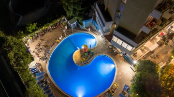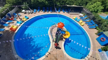 Garden with relaxation area and swimming pool, solarium, bicycles available upon reservation, bar, reading room, TV room. Evening entertainment and activities for adults are offered, as well as discounts at amusement parks, spas, and water slides.