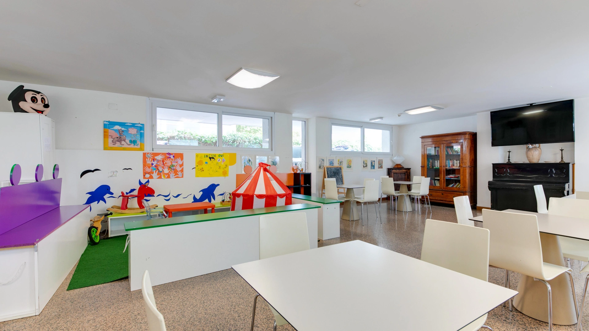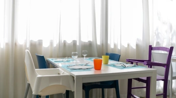 At meals: baby menus on request, personalized baby food and menus, entertainment during meals, high chairs, and a fully equipped kitchenette available to parents.