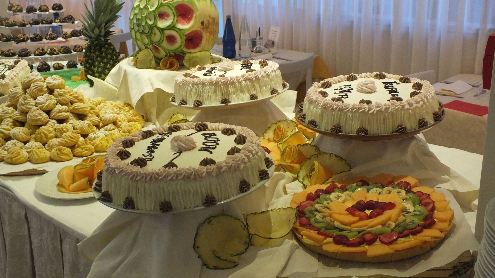 LUNCH AND DINNER: buffet, choice of menu with local and international meat and fish dishes.