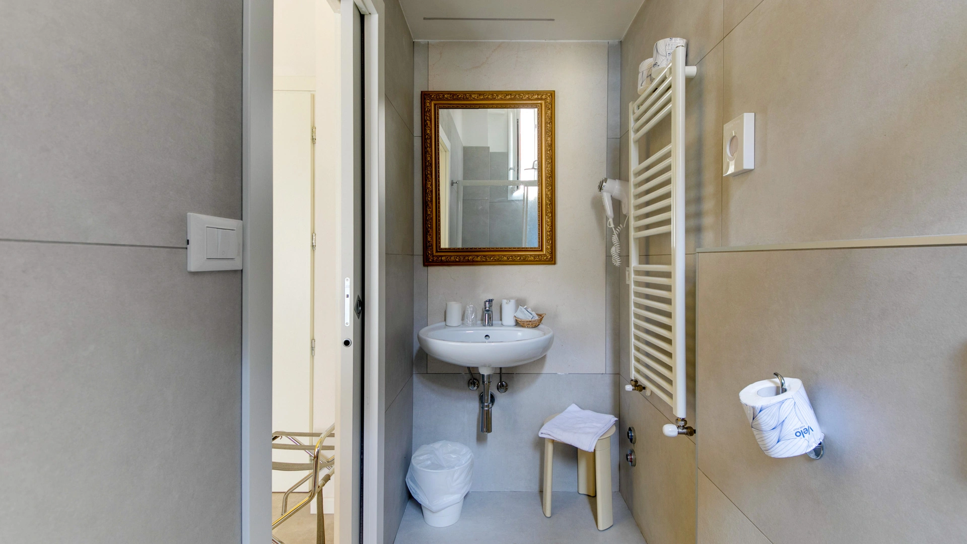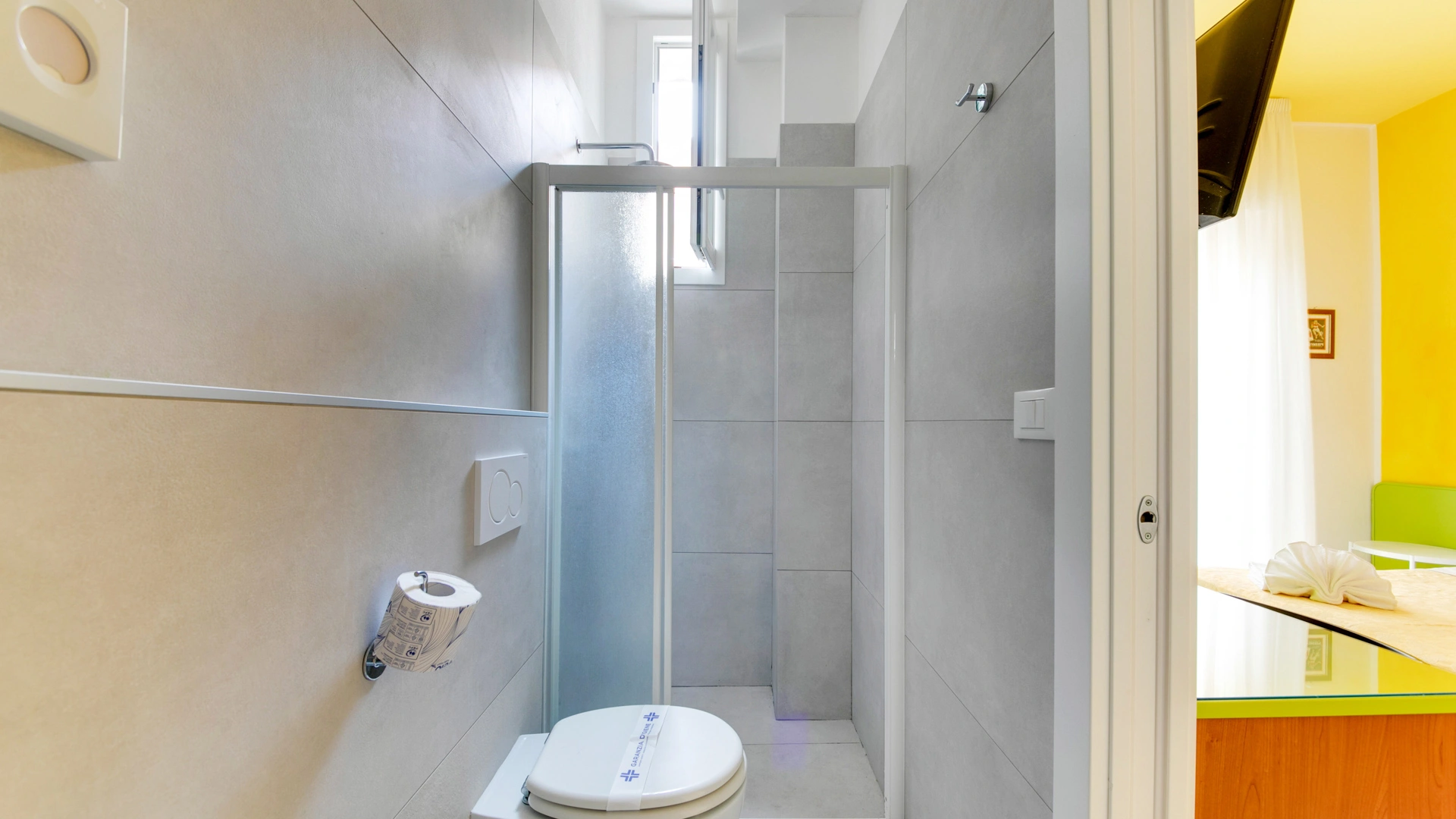 The rooms feature a balcony, partial sea view, air conditioning, an electric safe, a telephone, satellite TV, fiber optic Wi-Fi, and a private bathroom with a shower and hairdryer. A minibar is available upon request for a fee.