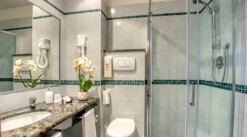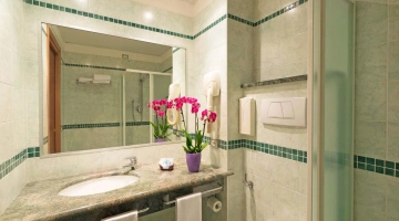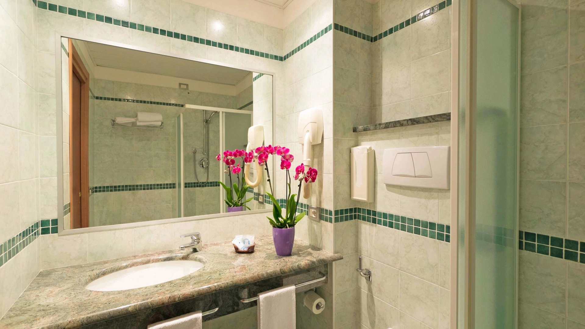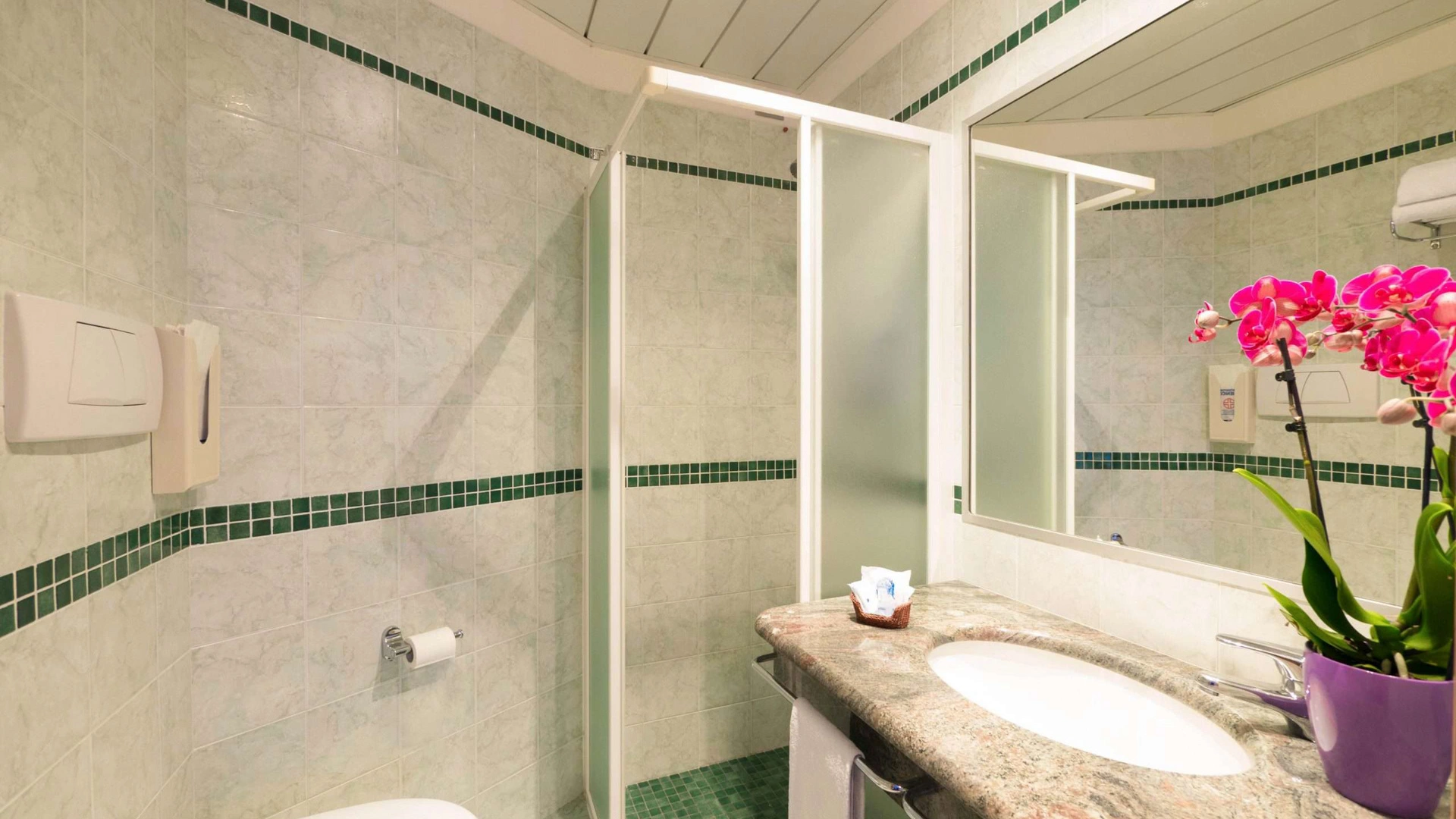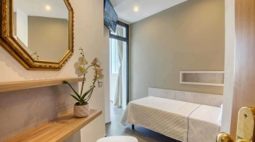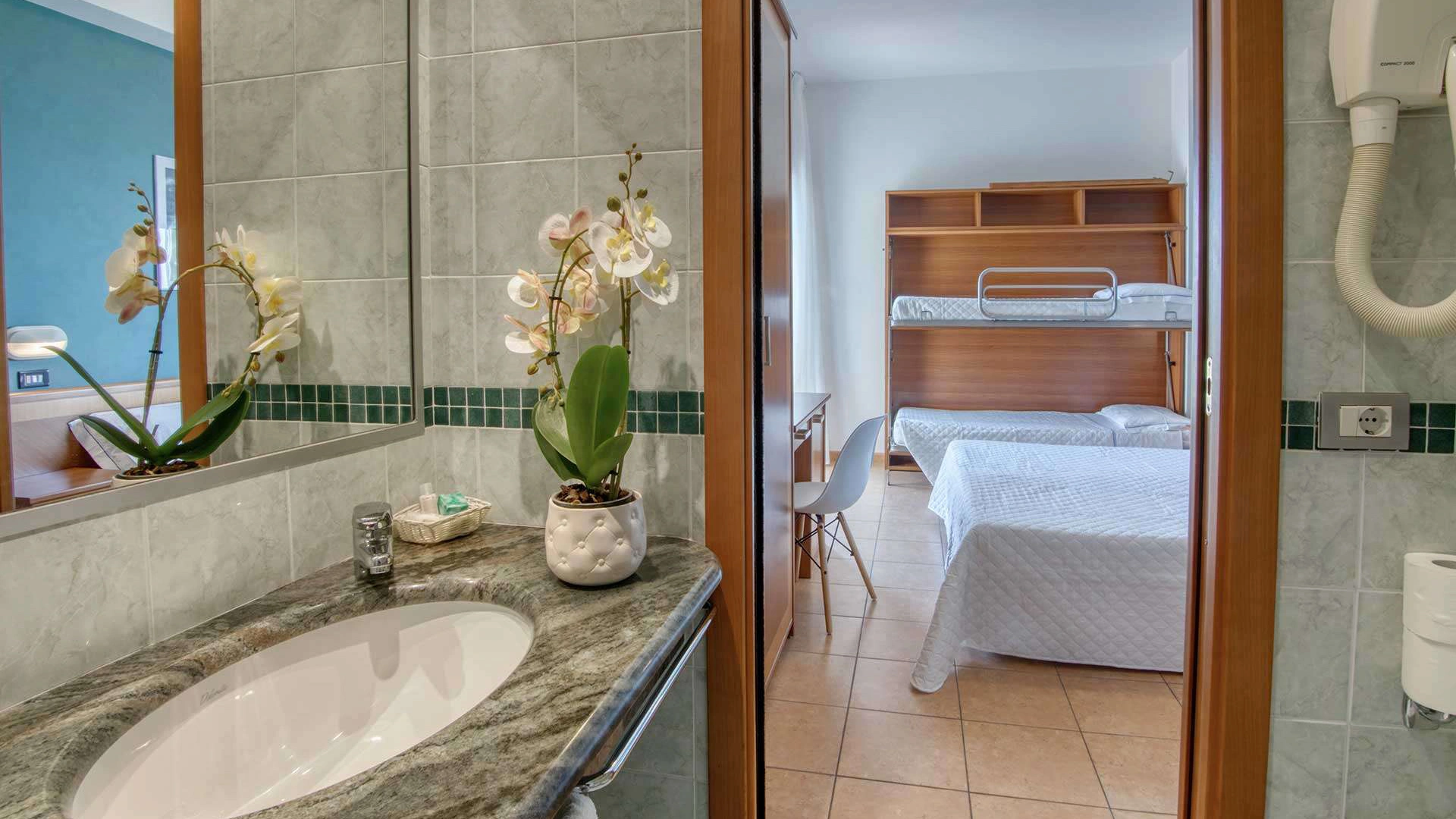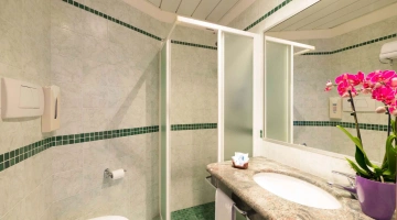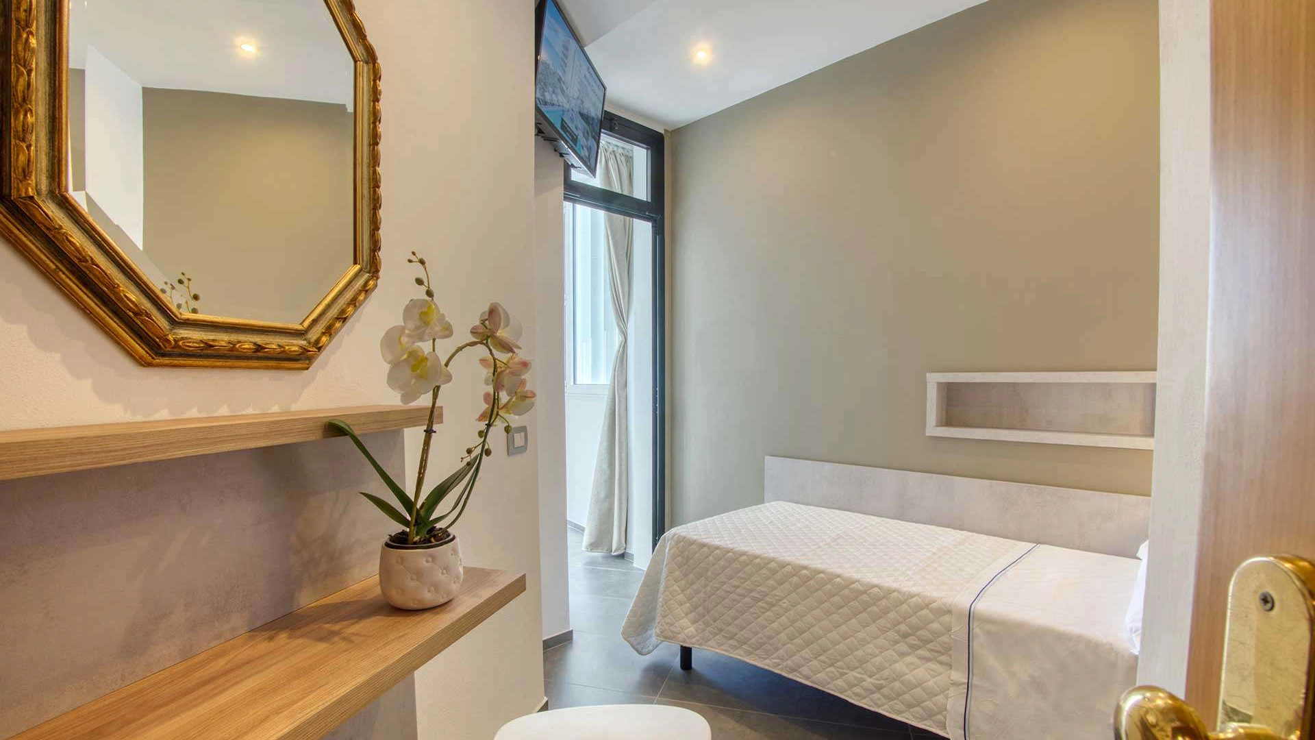 Modern, recently renovated rooms, all with sea-view balcony, 50 Mbit/s fiber Wi-Fi, individually controlled air conditioning, ceramic floors, mini fridge (not stocked), safe, 32" satellite TV, telephone, bathroom with shower box, toilet, bidet and hairdryer.