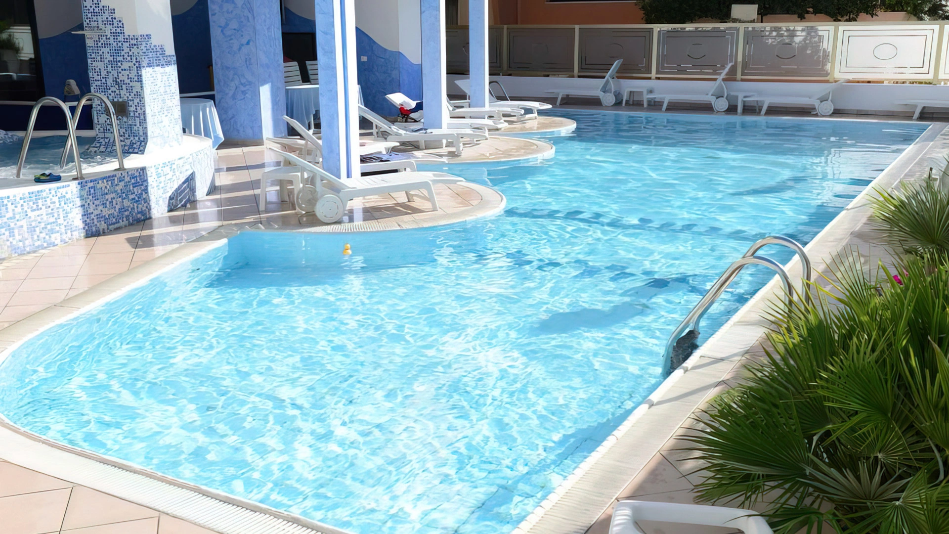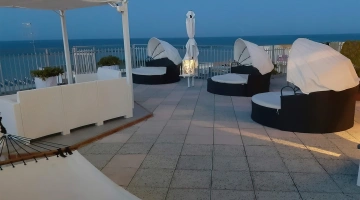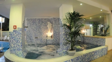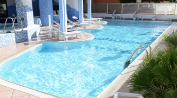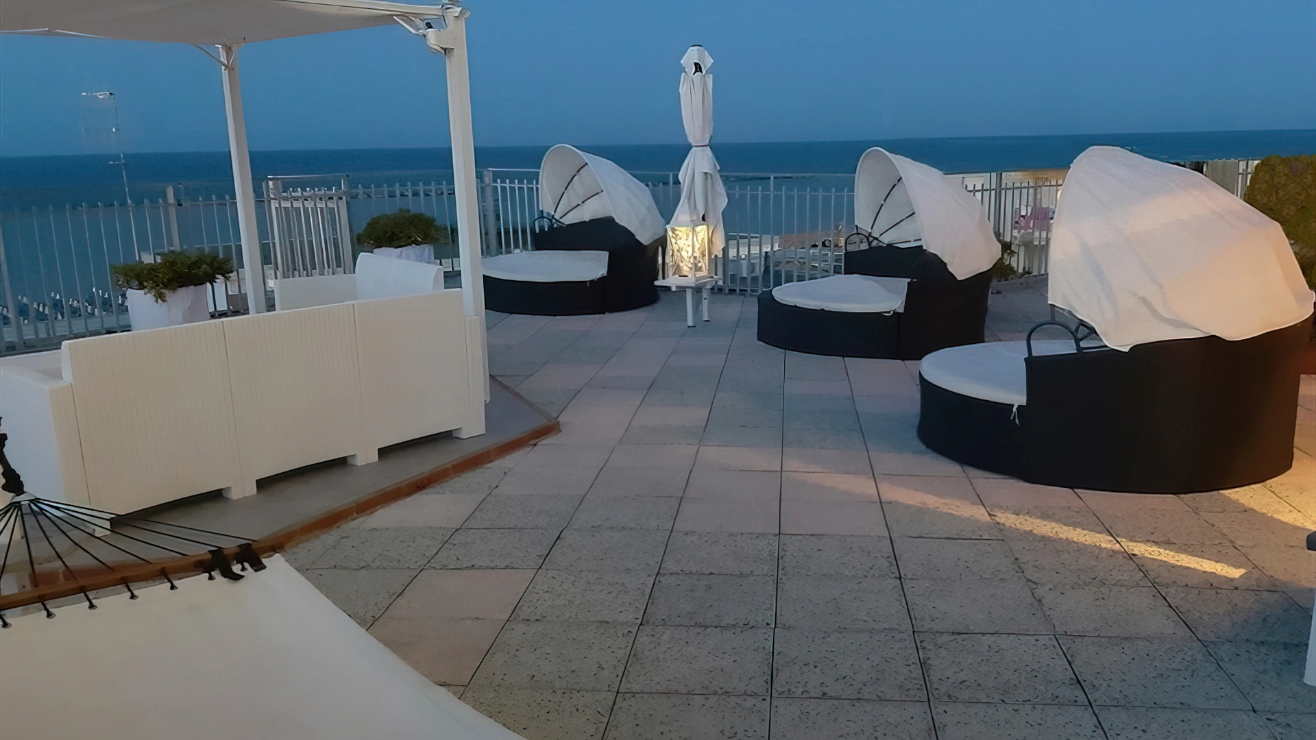 Swimming pool, electric minicar, wellness area with hydrotherapy paths and hydromassage armchairs, fitness room, reading room with newspapers, satellite TV, lift, table tennis, billiard room, beach towels (for a fee). There is a panoramic terrace equipped with a hydromassage tub, sun loungers and beach umbrella, mini golf and a playground area.