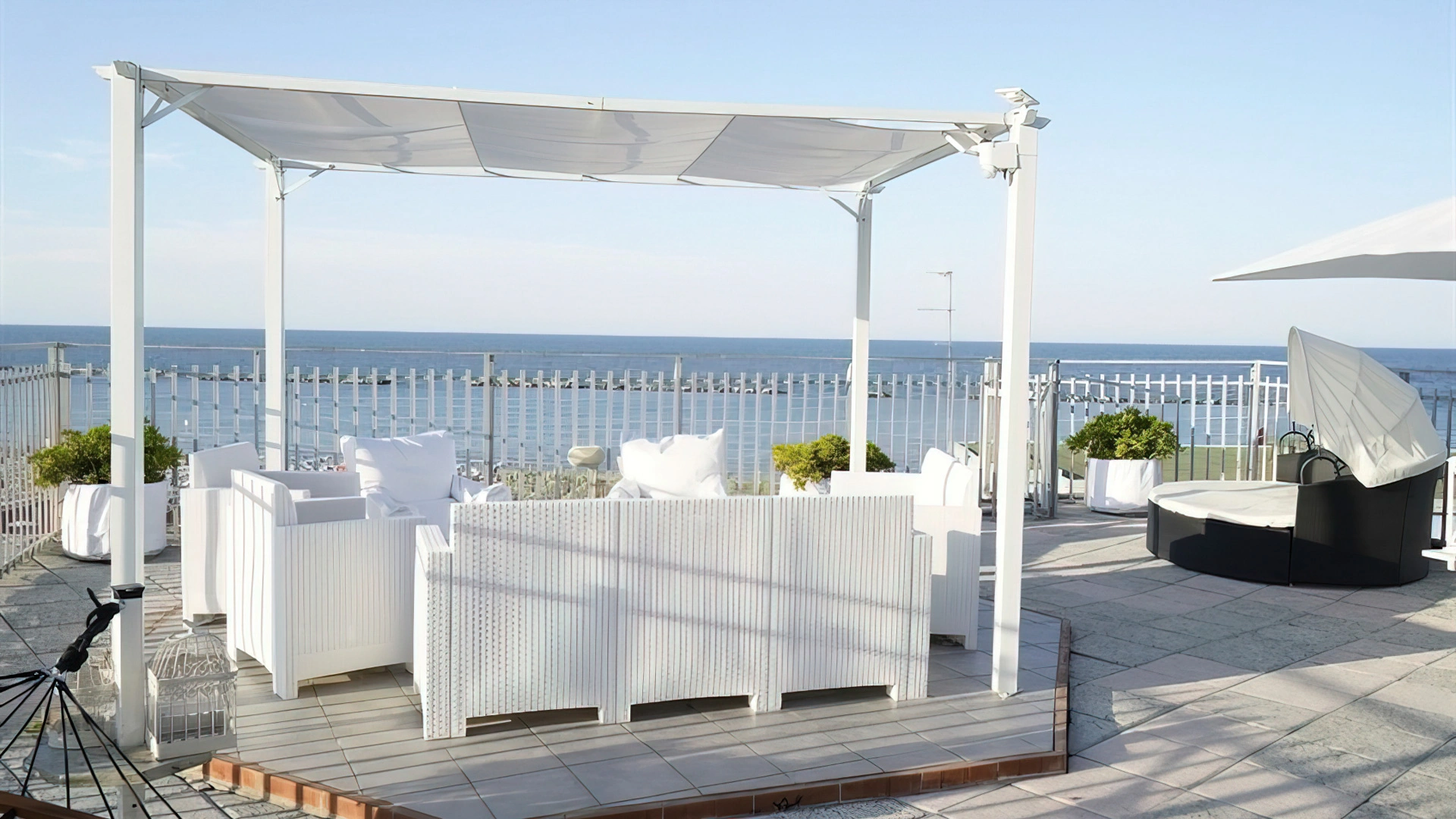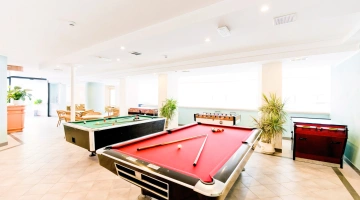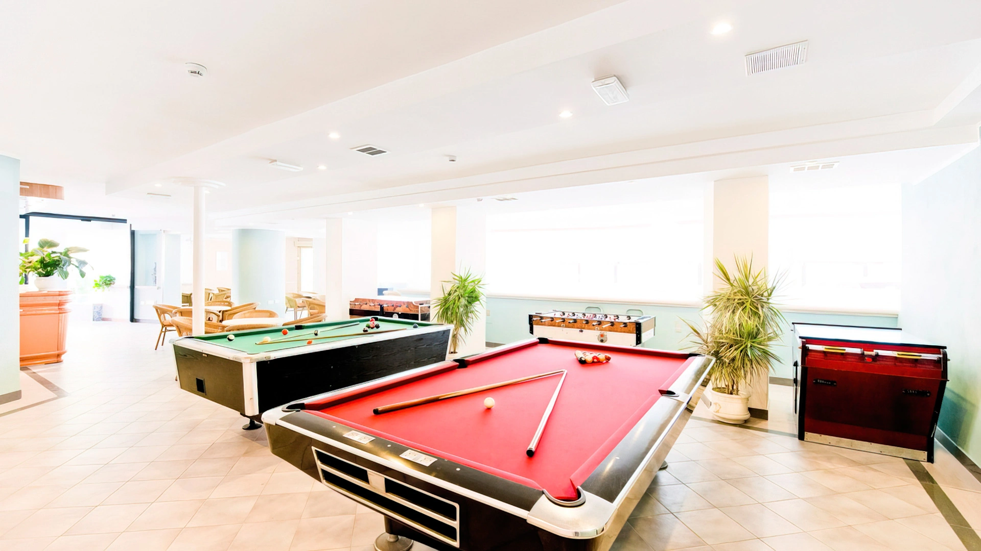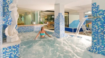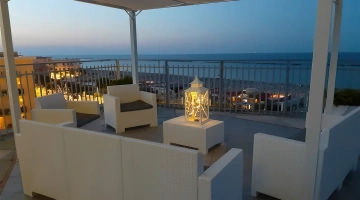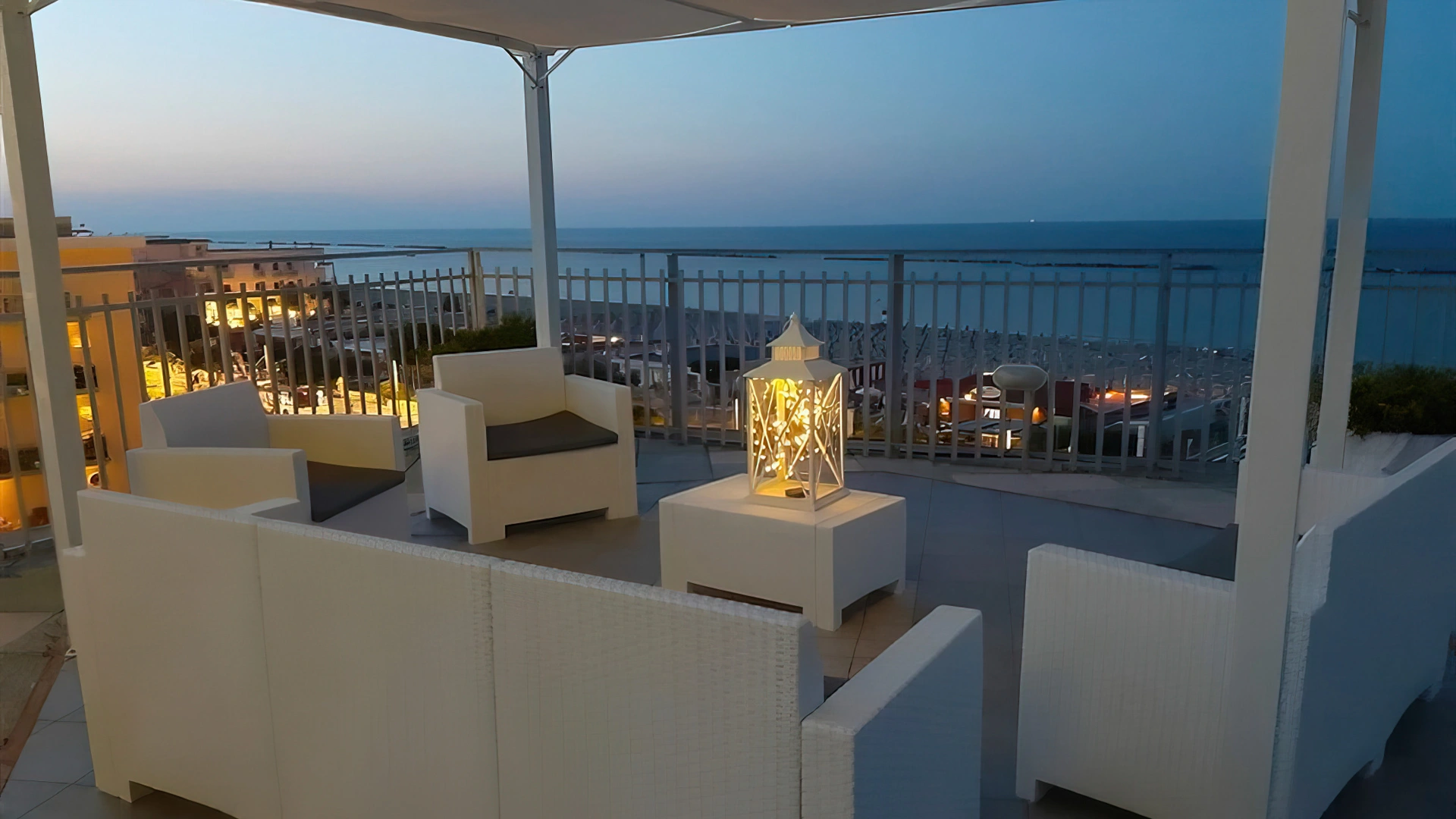 Swimming pool, electric minicar, wellness area with hydrotherapy paths and hydromassage armchairs, fitness room, reading room with newspapers, satellite TV, lift, table tennis, billiard room, beach towels (for a fee). There is a panoramic terrace equipped with a hydromassage tub, sun loungers and beach umbrella, mini golf and a playground area.