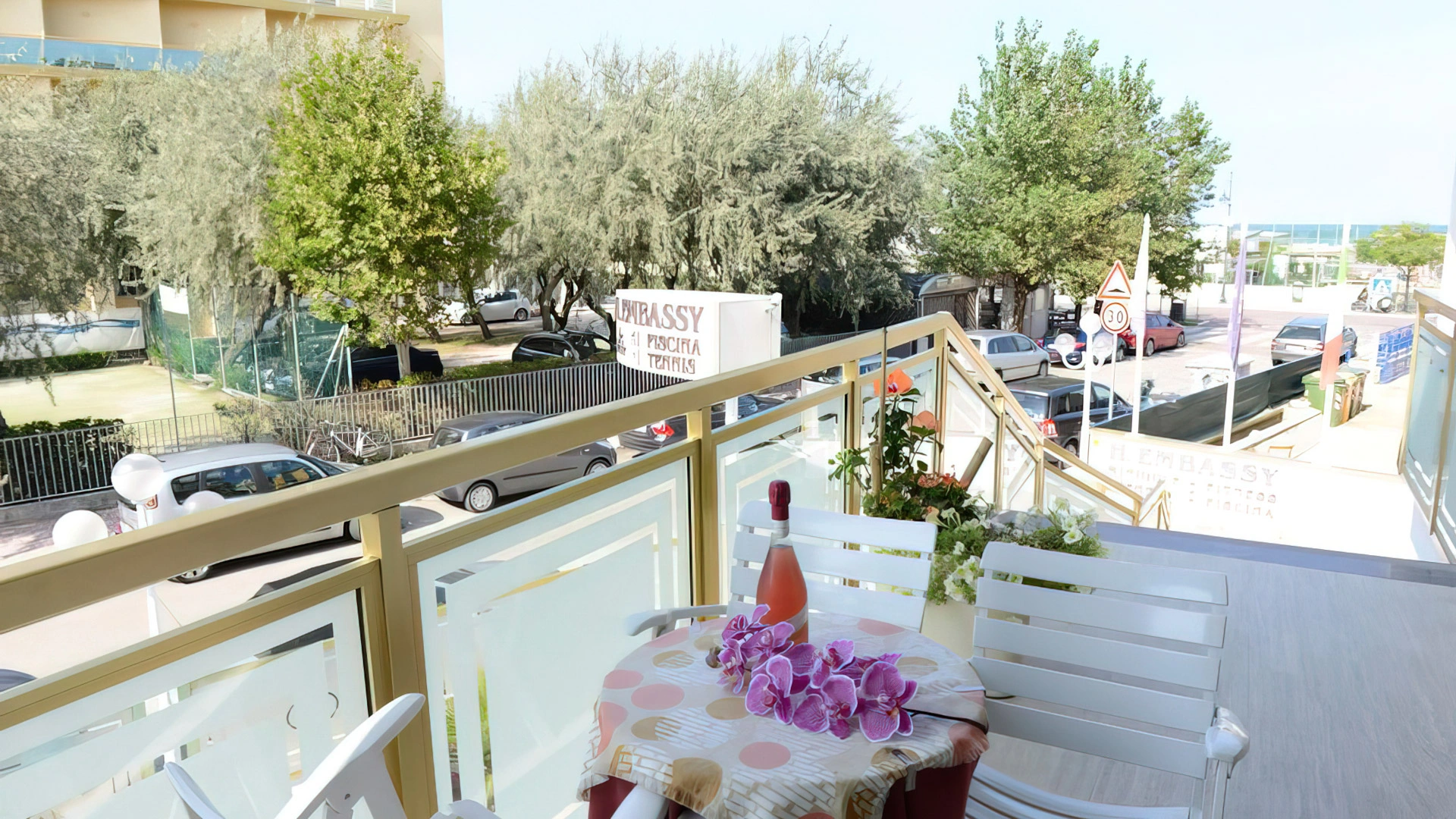 With always filtered water, the swimming pool at the Hotel Embassy is 17x5 meters in size. It has an area with shallower water for children and an area with a depth of 1.50 m. There are three peninsulas equipped with sunbeds and beach umbrella that directly overlook the water.