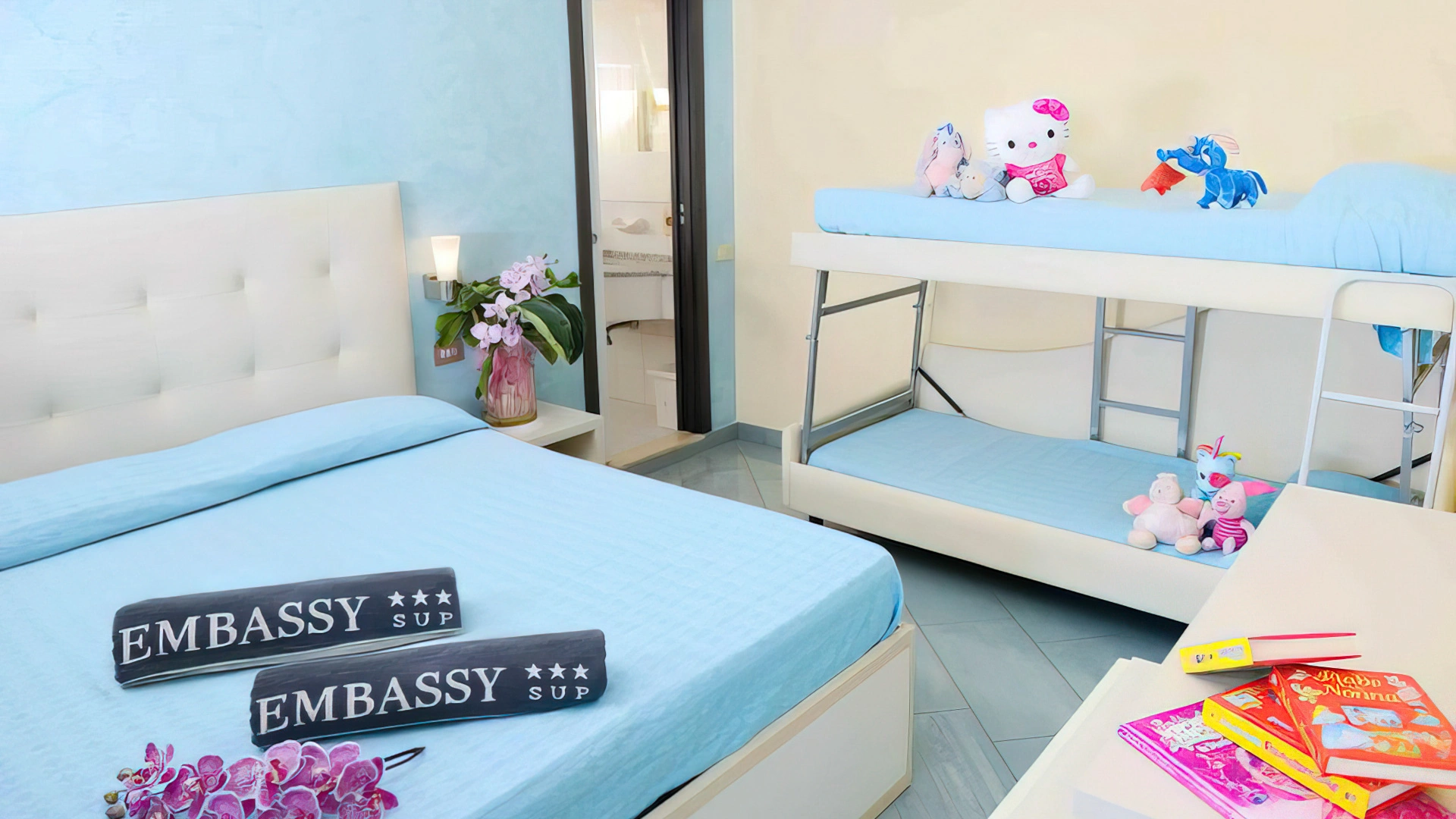 FAMILY: spacious "superior rooms" with balconies overlooking the sea and "connecting rooms" with 1 or 2 bathrooms and independent entrances are available.