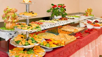LUNCH AND DINNER: large buffet served with front cooking created by the chef.