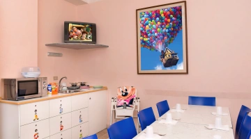 At meals: high chairs, baby menu, equipped kitchenette, baby food preparation service.