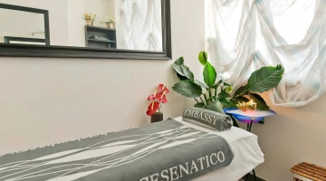 The Embassy Hotel has a wellness area with hydrotherapy paths equipped with pressurized micromassage, hydromassage armchairs, a hot water waterfall and two massage beds. Also available is the panoramic terrace with hydromassage tub, beauty treatments and massages.