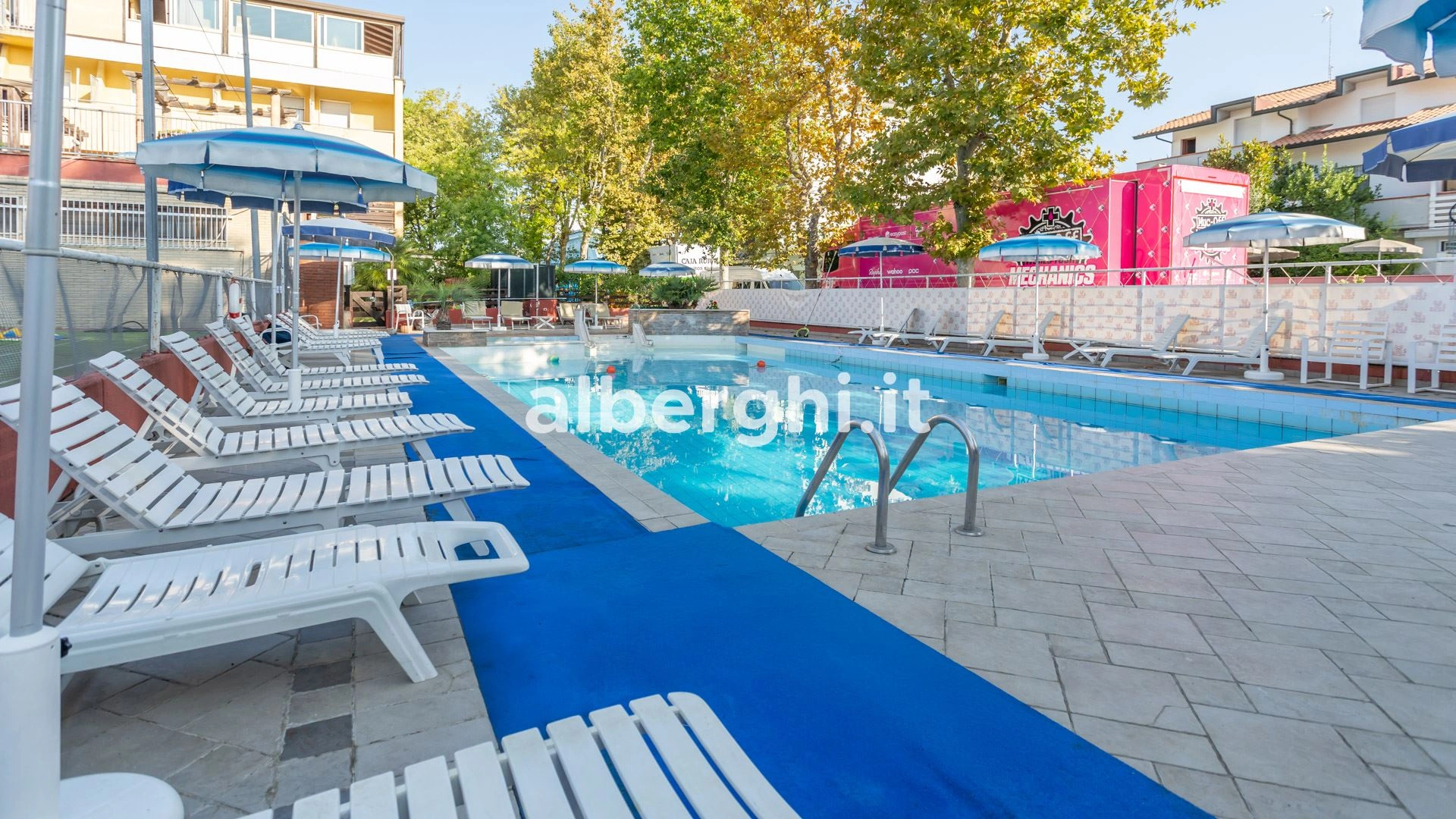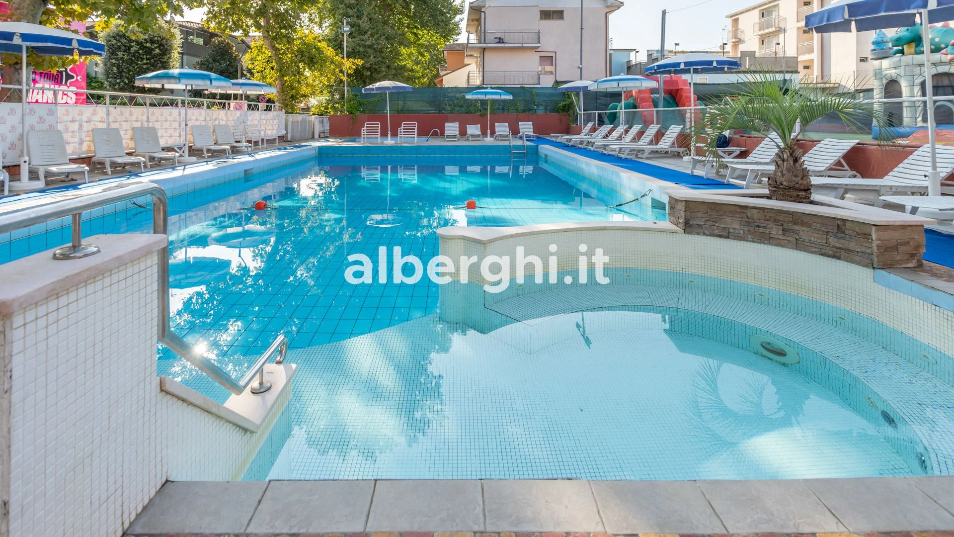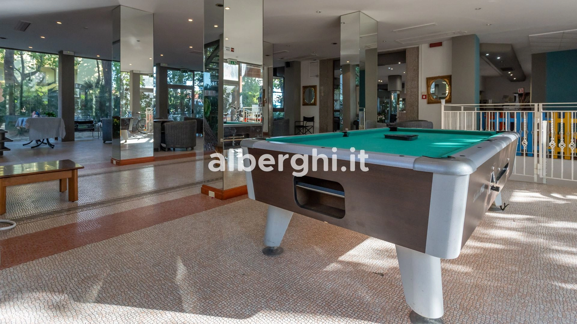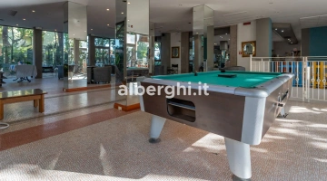 The hotel is characterized by the presence of a swimming pool with children's pool, solarium with sunbeds and hydromassage. The structure also has a garden, elevator, reading room, billiards and table tennis room, TV room with Dolby surround, conference room, gym with Technogym equipment, multipurpose sports field for tennis, soccer and volleyball.