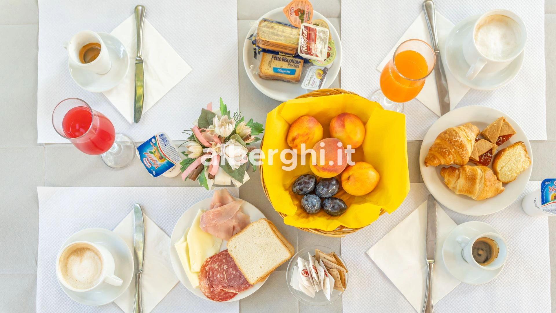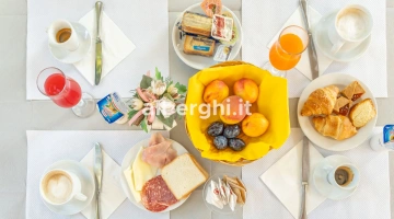 BREAKFAST: sweet and savoury buffet, with bread, cakes and omelettes prepared on the spot.