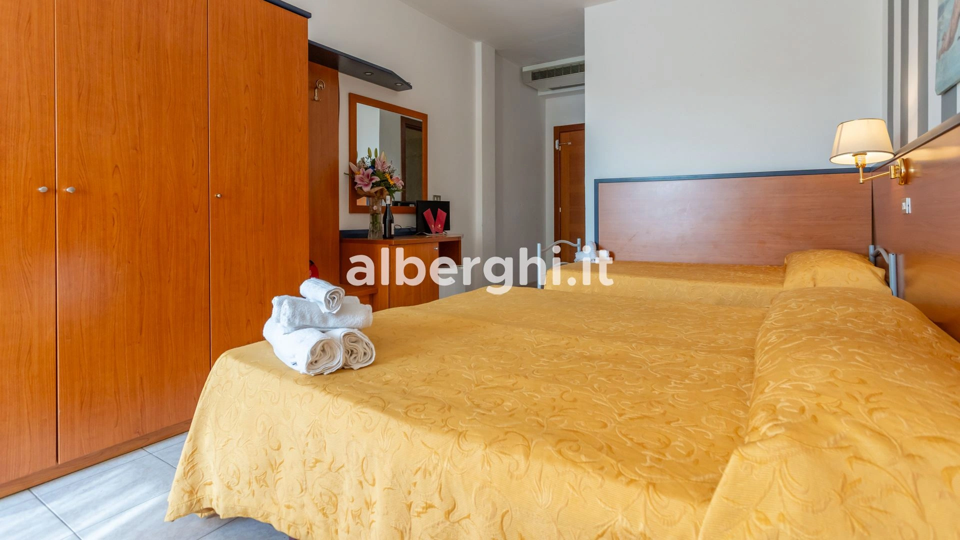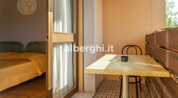 The rooms are equipped with air conditioning, balcony, telephone, safe, satellite TV, fiber Wi-Fi connection and private bathroom with hairdryer and shower. Finally, an empty minibar available on request.