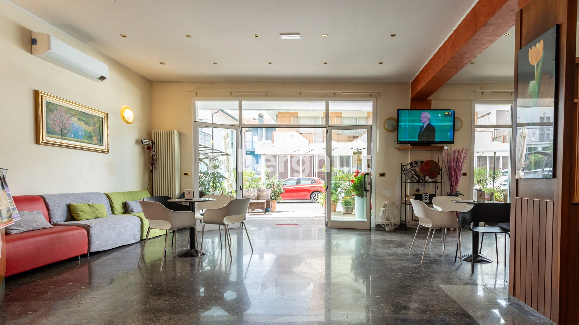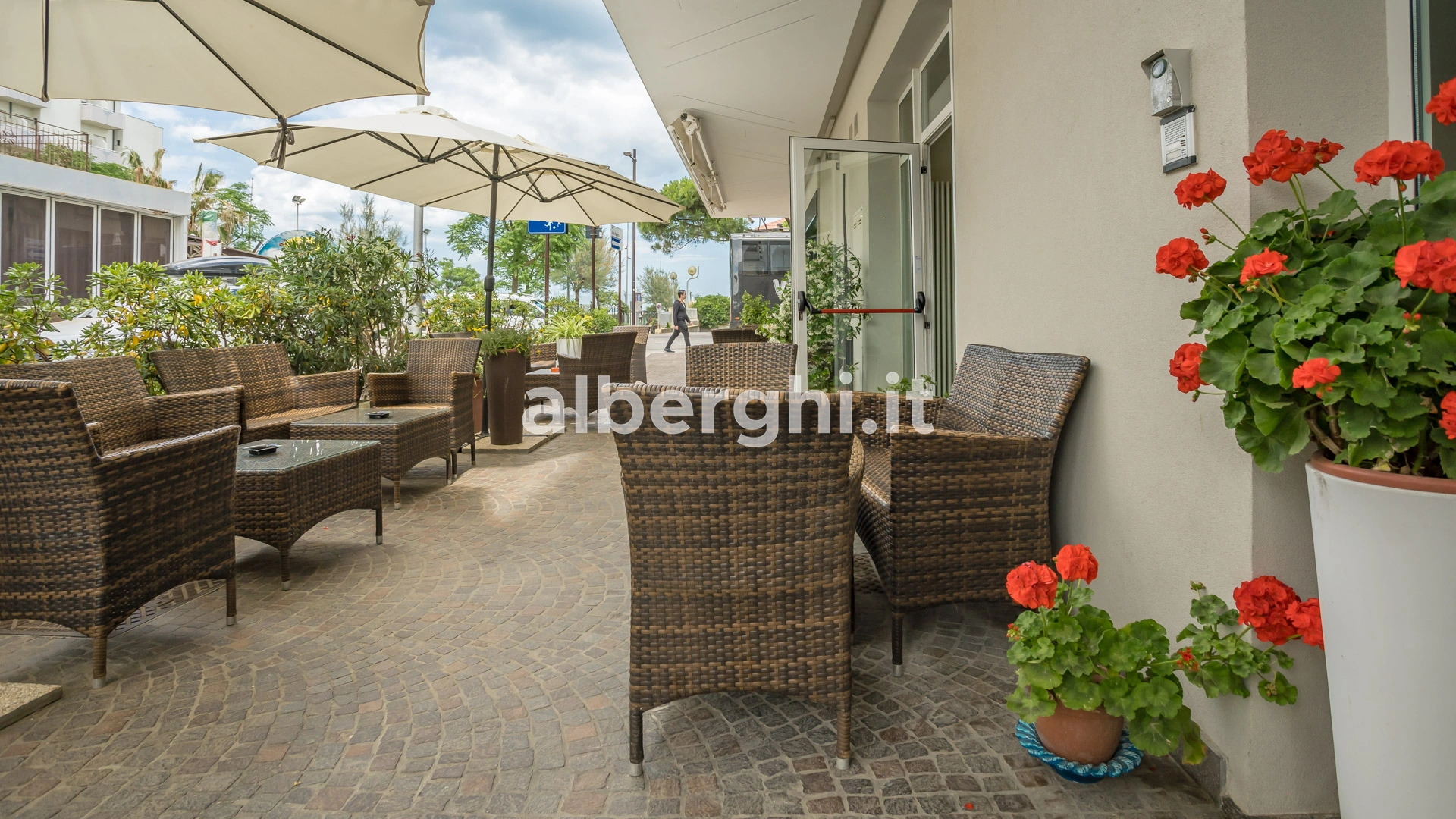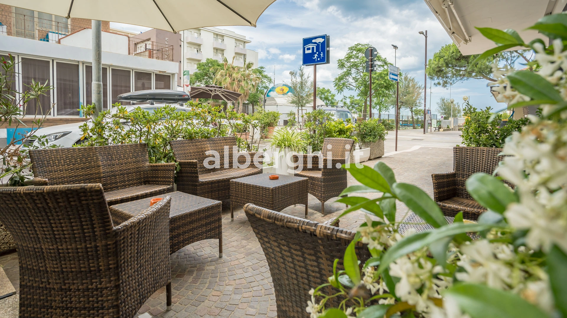 The hotel is located in Viserbella, a hamlet in the northern area of Rimini, overlooking the seafront, a few steps from the beach. The location is convenient for those who want to reach Rimini Fiera.