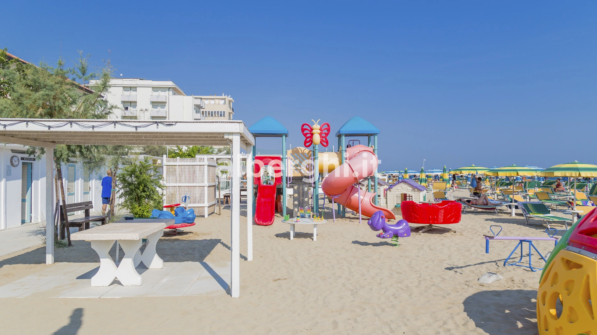 - All Inclusive: All Inclusive formula: includes Colazione, Pranzo, Cena, Acqua ai pasti. Also includes Some drinks with meals. Beach: Lettino, Ombrellone.