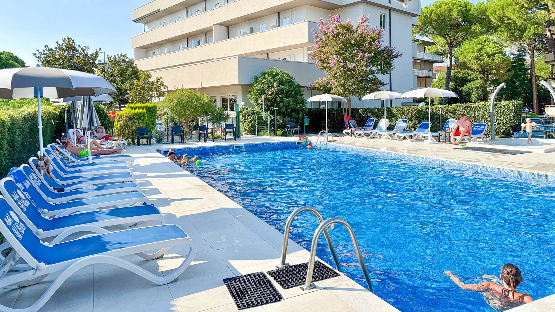 In the garden there is a seasonal swimming pool with solarium area. The pool is also suitable for children as it has areas with shallow water. Bar service available.