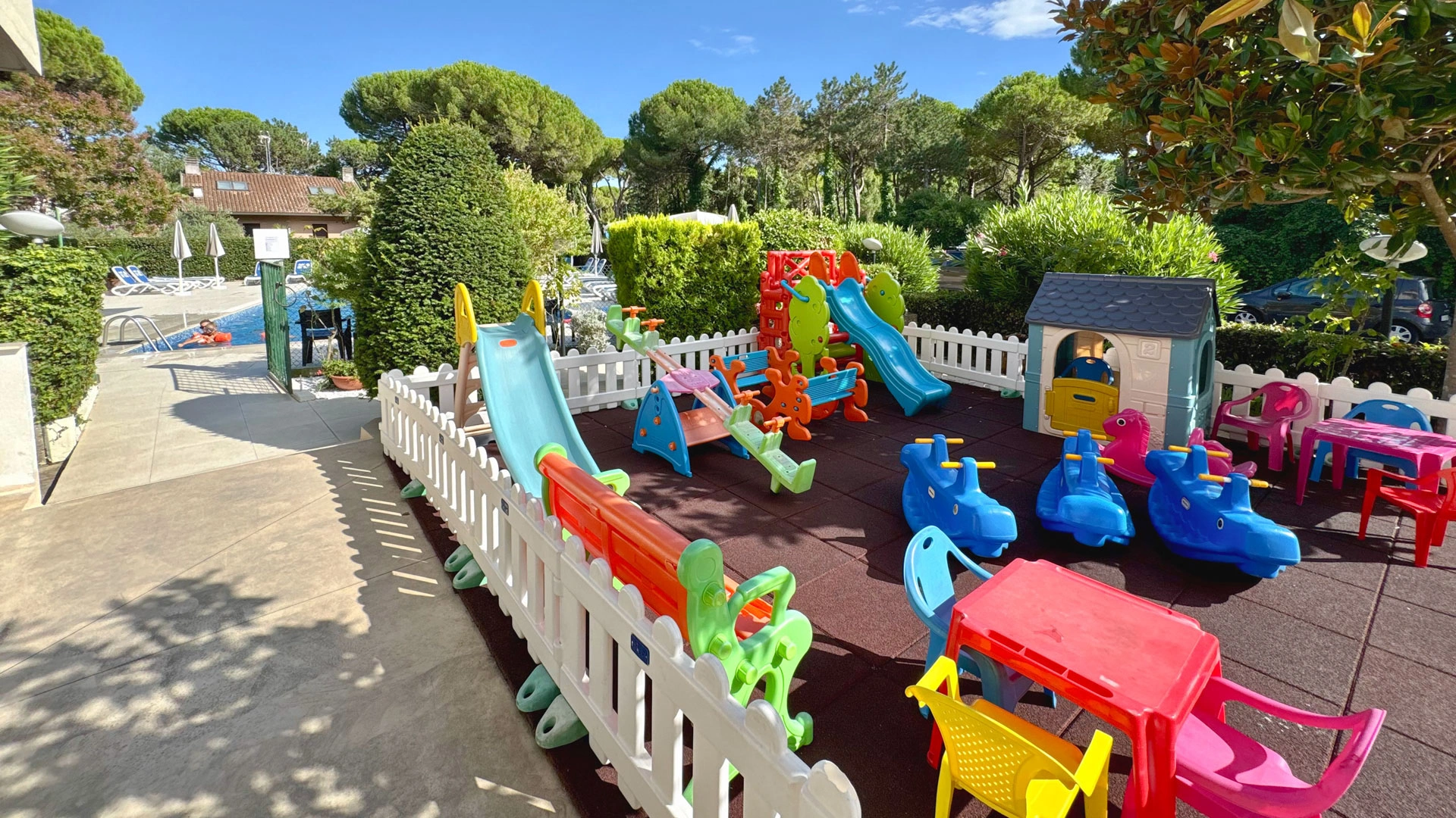 Children: availability of family rooms, cots, baby menu; There is an outdoor play area and a shallow water area in the swimming pool.