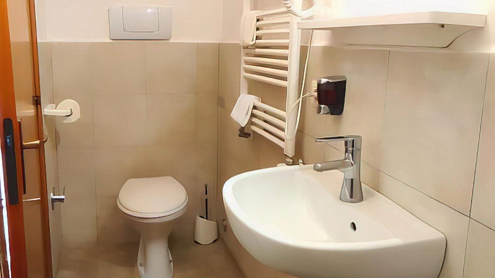 Disabled people: the accommodation on the ground floor is accessible to disabled people and is equipped with a bathroom with a lower sink, an emergency bell, a higher toilet, grab bars adjacent to the toilet and the shower without tray.