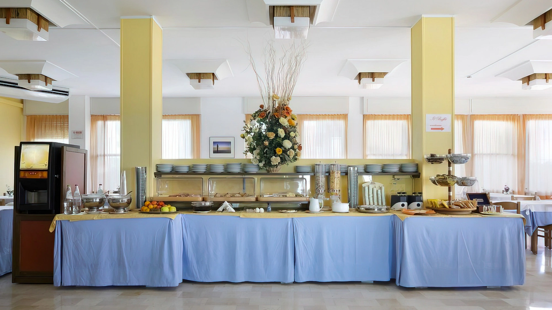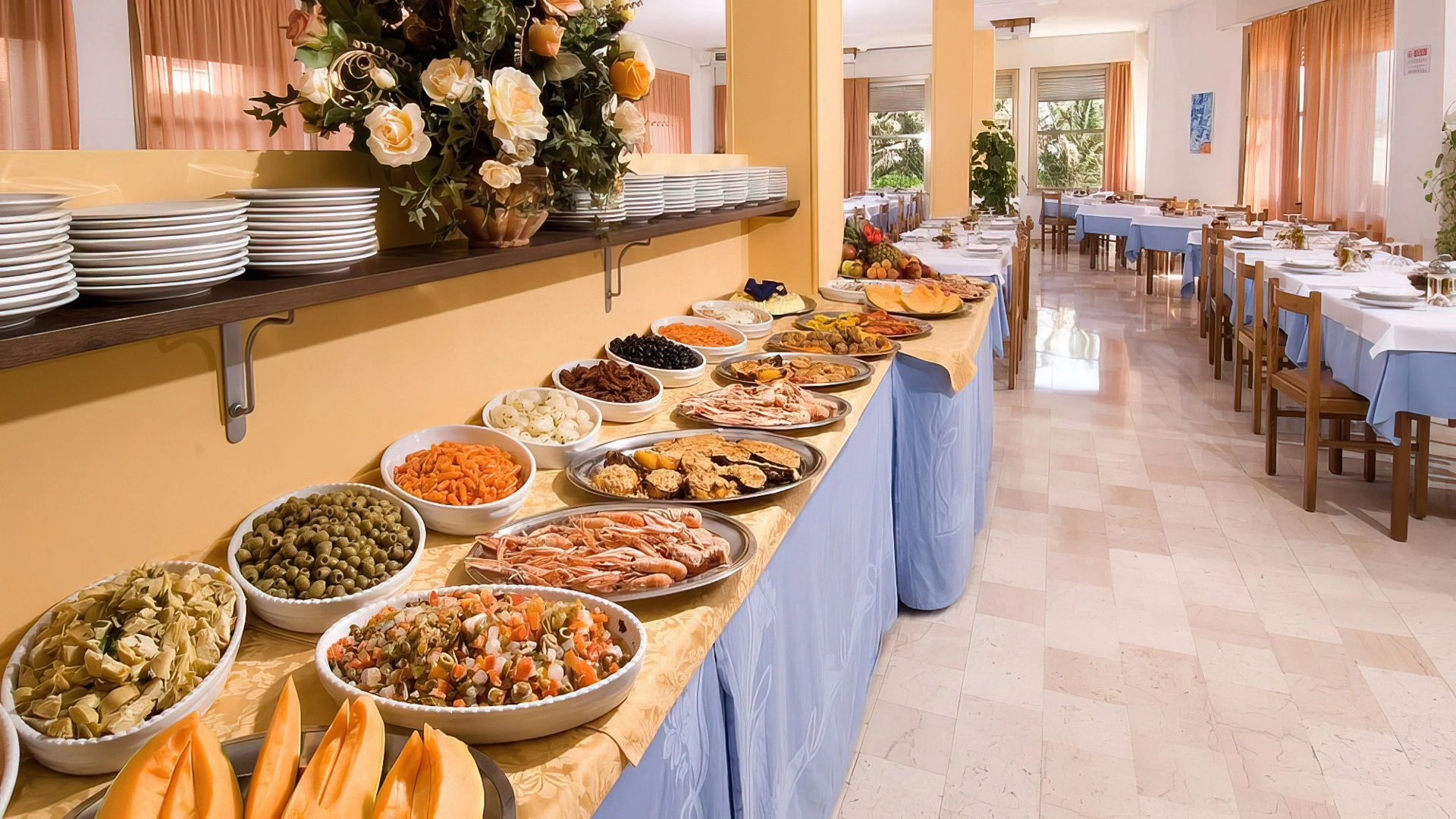 The breakfast buffet includes, among other things, savory foods and homemade desserts. The hotel's restaurant offers local and international fish and meat dishes for lunch and dinner, served in the special room overlooking the sea. Menu variations for allergies and intolerances are available upon request.