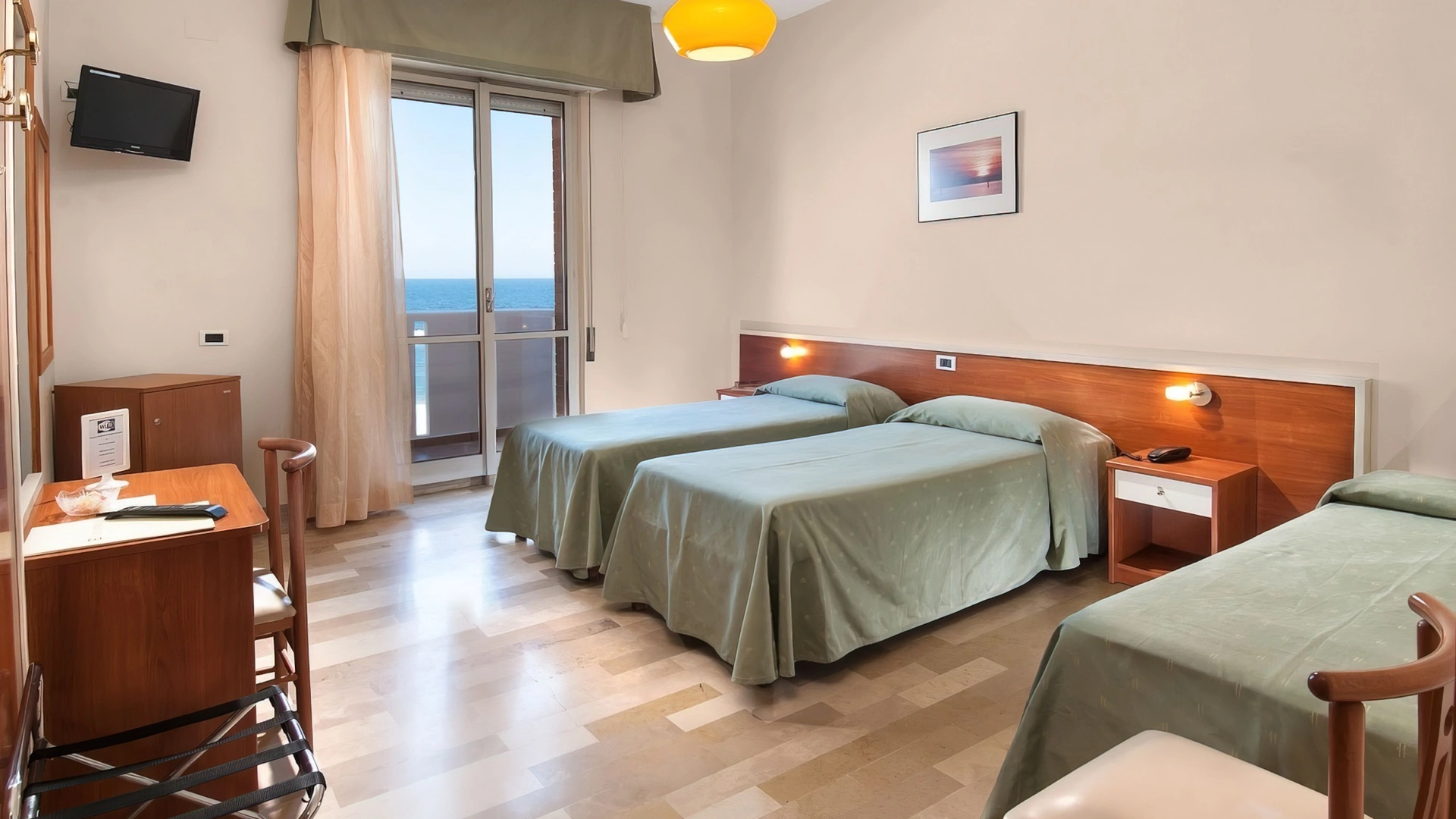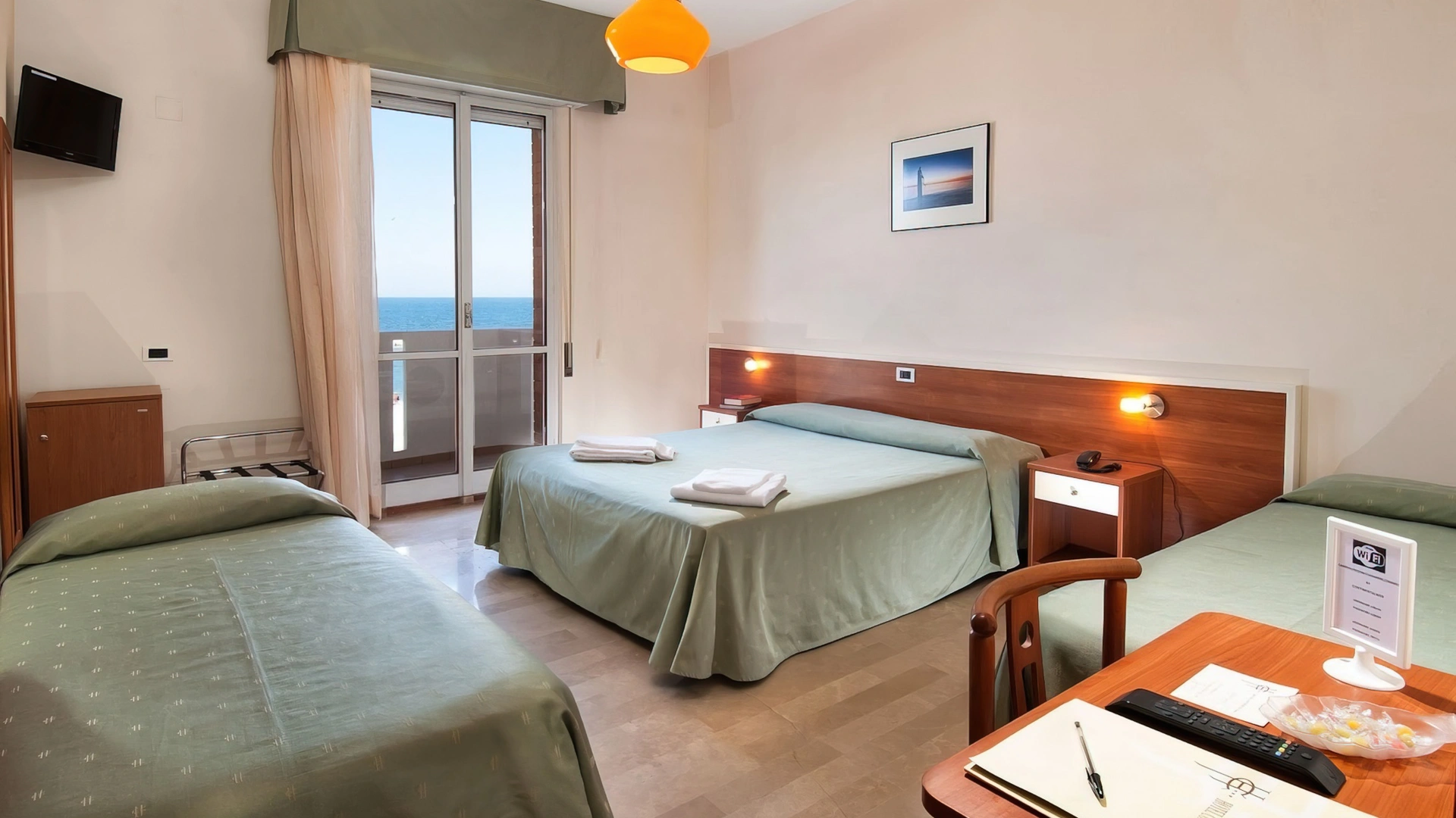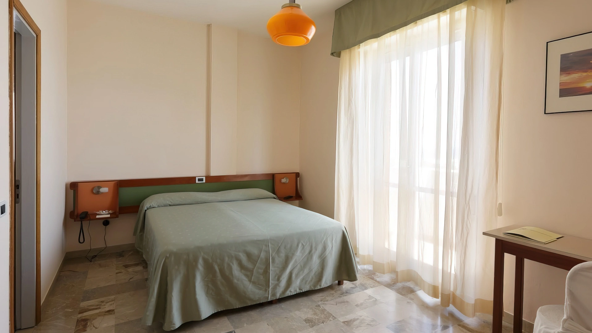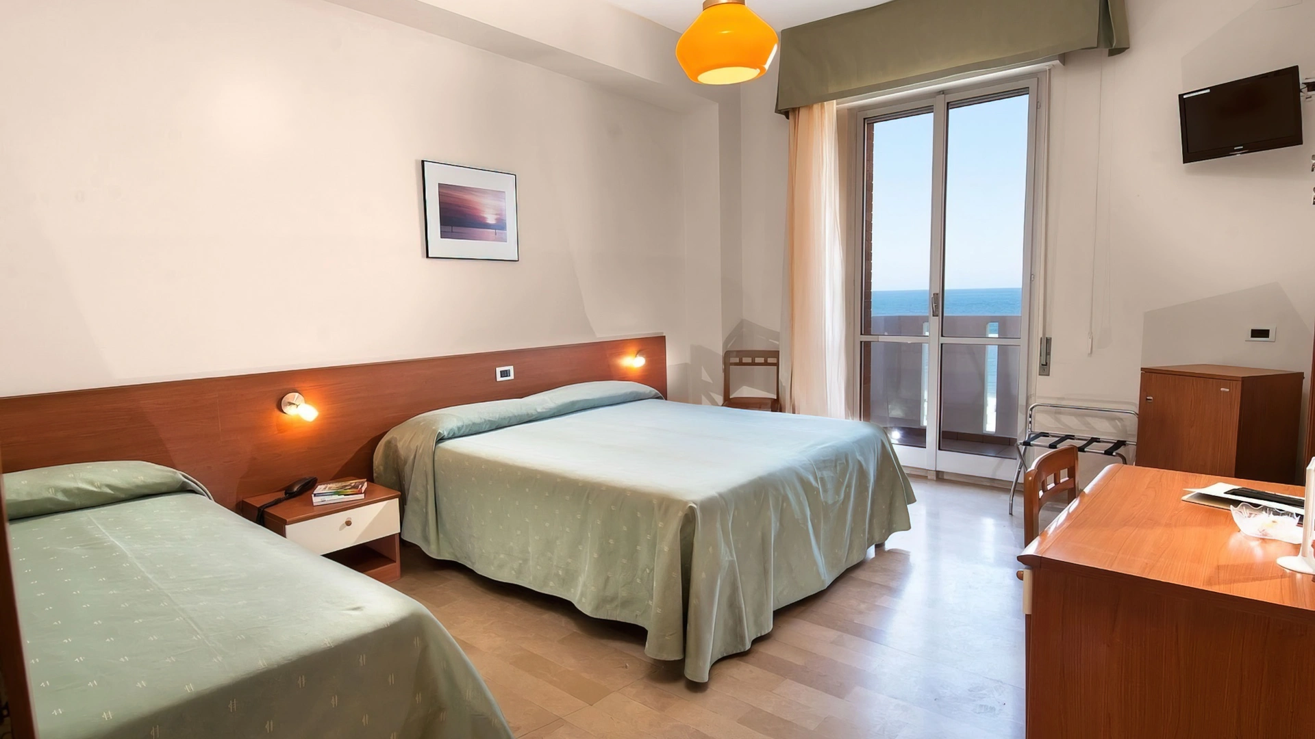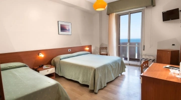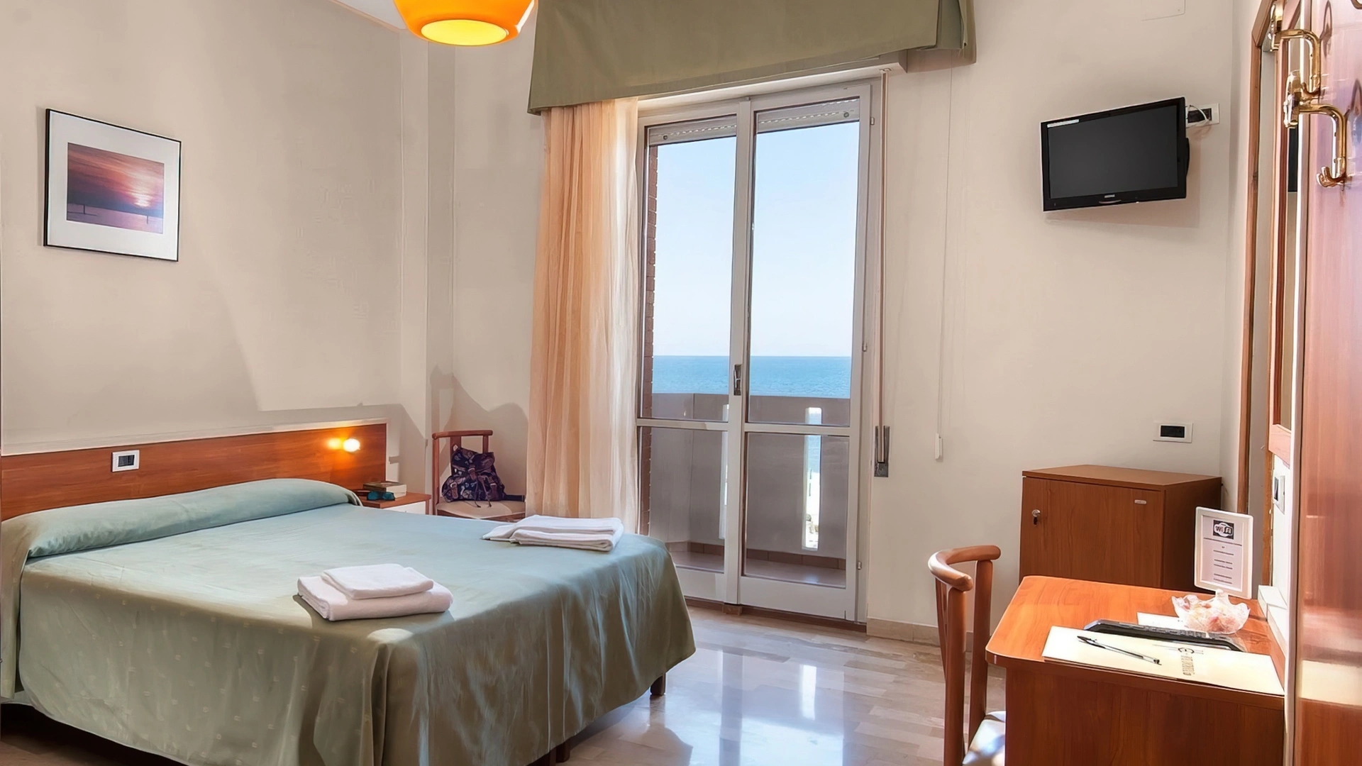 The 57 rooms, furnished in a classic and essential style, are available in different configurations, from single to quadruple. All accommodations have a balcony, TV, telephone, minibar, safe, independent air conditioning, free Wi-Fi and private bathroom with shower or bathtub. Some rooms offer a view of the city, while others overlook the sea.