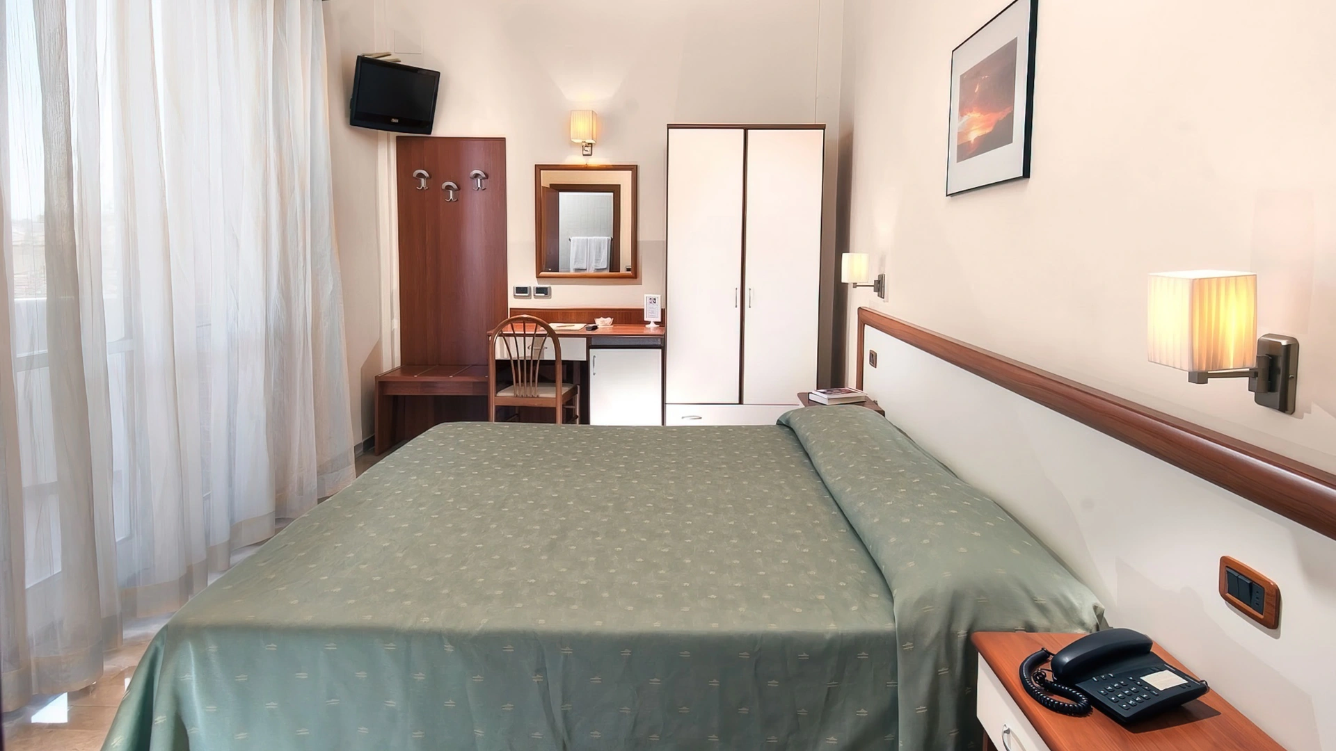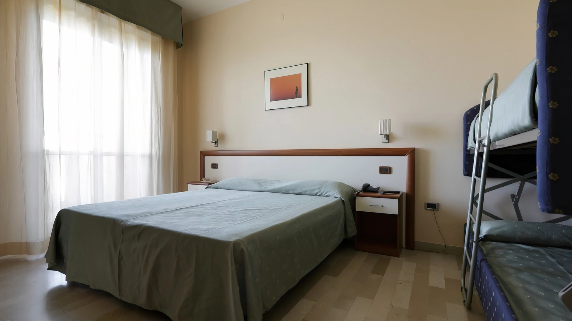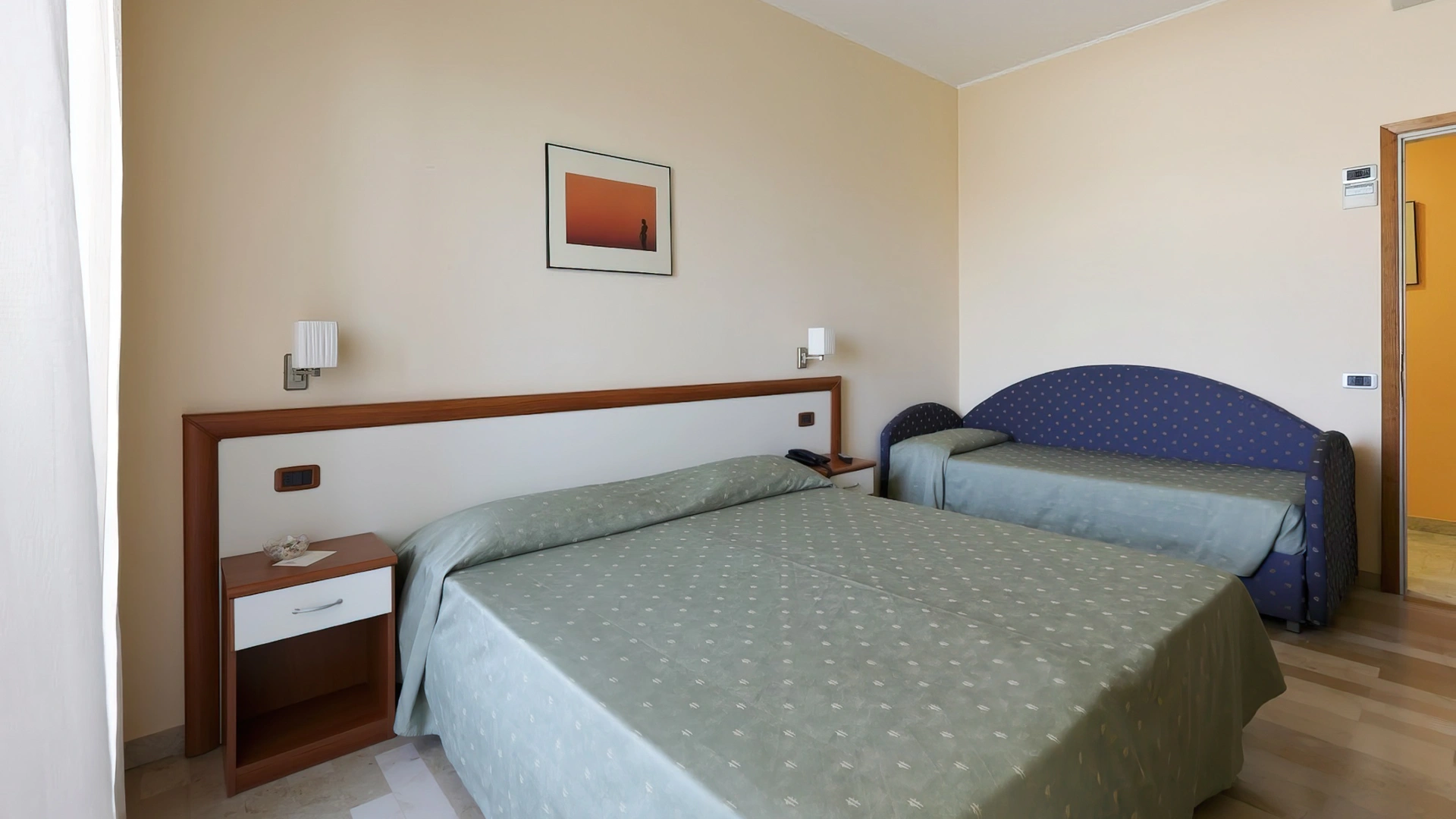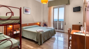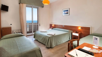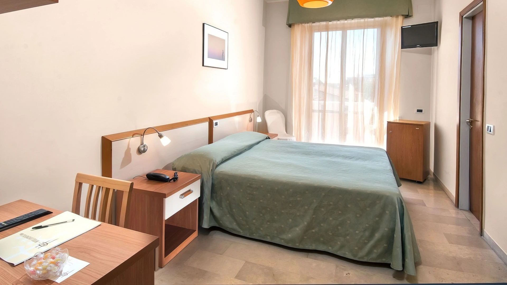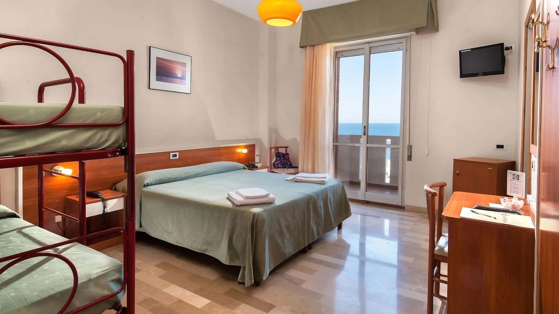 The 57 rooms, furnished in a classic and essential style, are available in different configurations, from single to quadruple. All accommodations have a balcony, TV, telephone, minibar, safe, independent air conditioning, free Wi-Fi and private bathroom with shower or bathtub. Some rooms offer a view of the city, while others overlook the sea.