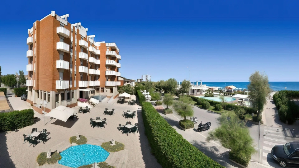 The hotel is located on the south seafront of Fano, opposite the Sassonia beach and a 10-minute walk, or 5 minutes by bike, from the historic center and the tourist harbour. The train station is less than 10 minutes away on foot, while Ancona-Falconara Marittima airport is a 30-minute drive away.