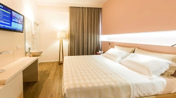 The hotel has welcoming rooms that have been completely renovated and equipped with air conditioning, Sky TV, safe, minibar, free Wi-Fi, private bathroom with shower cubicle and courtesy set, hairdryer, windows overlooking the sea or the ancient city walls. Some rooms are reserved for guests traveling with pets and others are dedicated to families. A Junior Suite with city view is available.