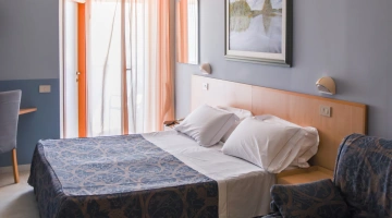 The 44 rooms present are characterized by classic-style furnishings and are all equipped with balcony, air conditioning, mini-bar, safe, telephone, TV, free Wi-Fi connection and private bathroom with shower cubicle, complimentary personal hygiene products and wall hair dryer. At an additional cost it is possible to request a room with a sea view.