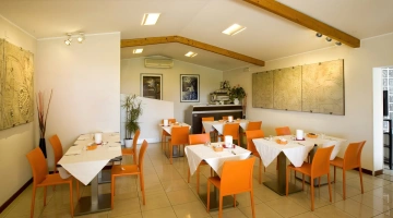 The breakfast buffet, served in the dedicated room, offers a selection of sweet and savory products accompanied by express coffee prepared on request. The hotel restaurant offers meat and fish dishes of the local cuisine.