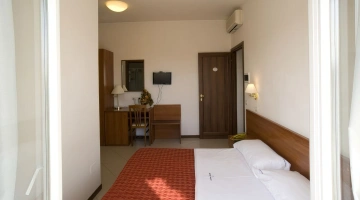 The hotel has 16 double rooms furnished in a classic style and equipped with air conditioning, independent heating, minibar, safe, free Wi-Fi, TV with satellite channels, telephone and bathroom with shower cubicle and wall-mounted hairdryer. Some rooms have a balcony and sea view. In each room it is possible to add an extra bed.