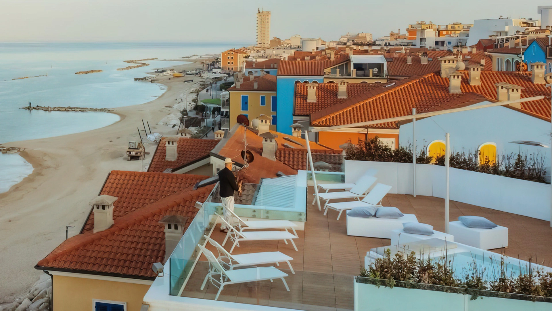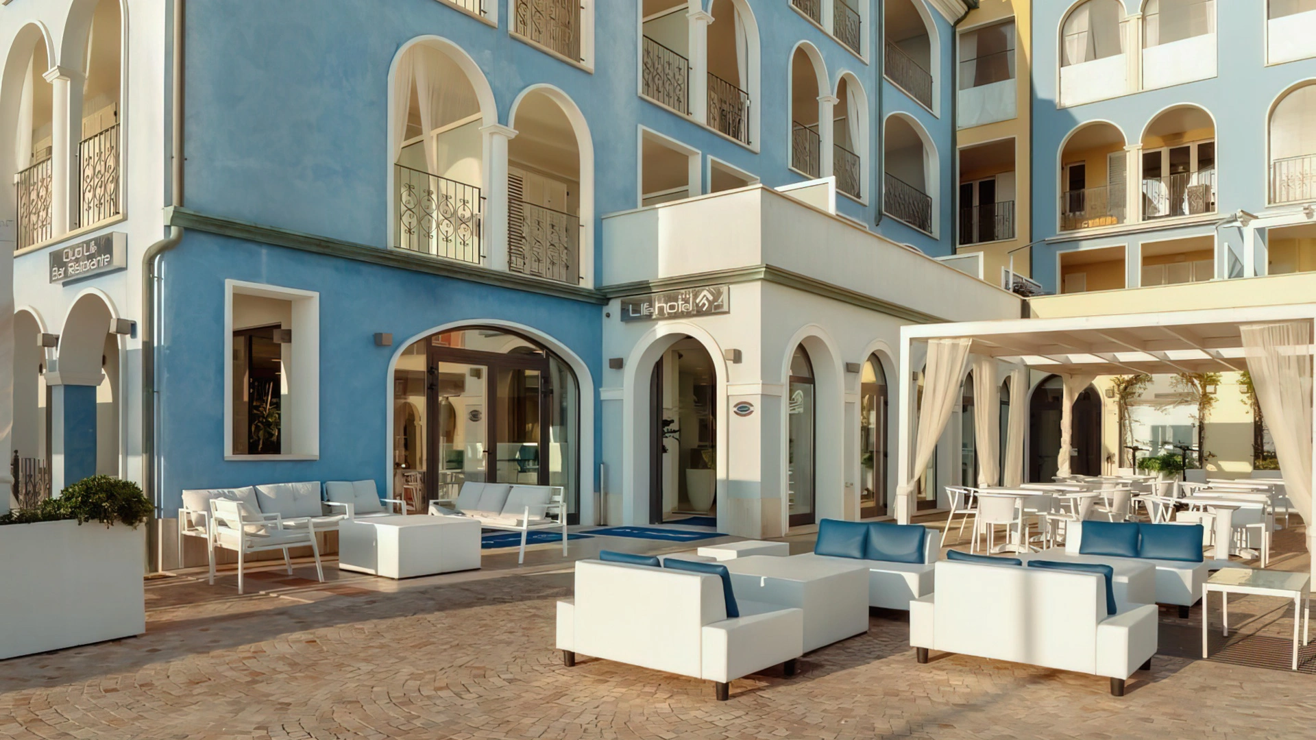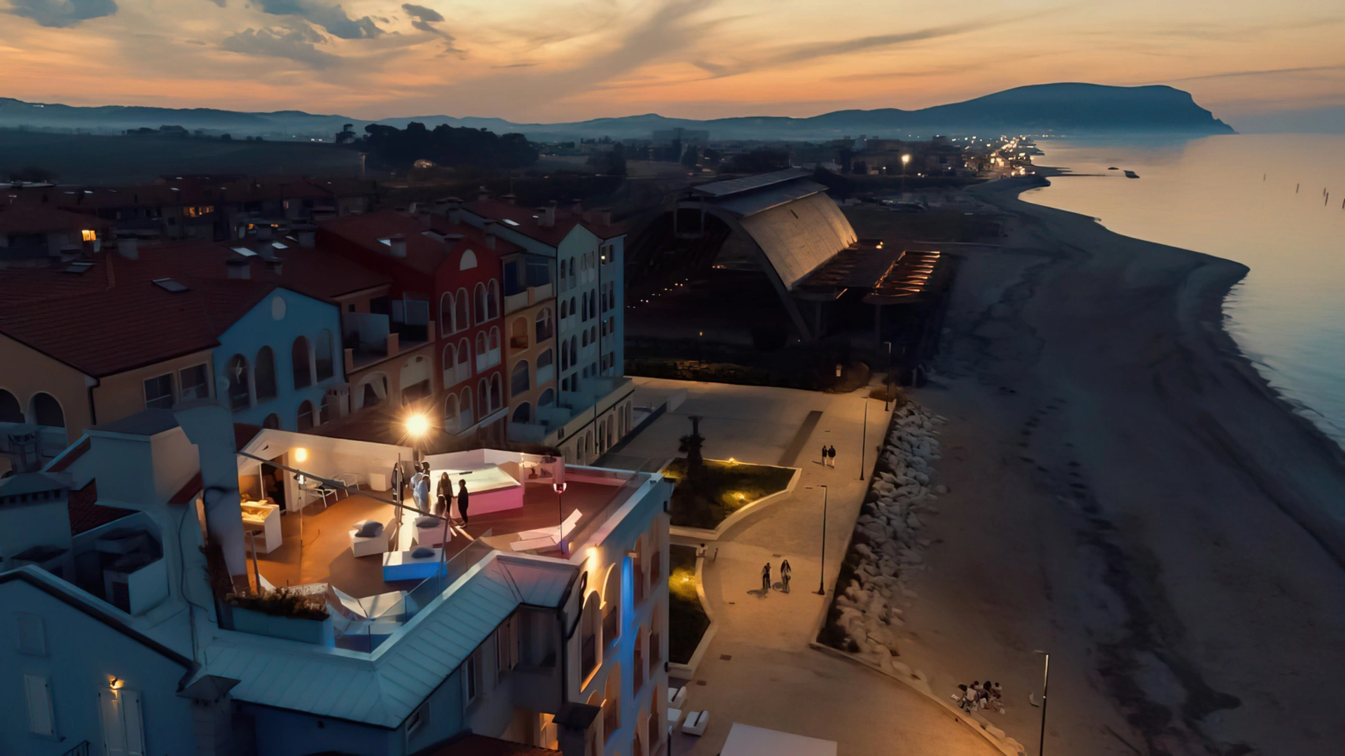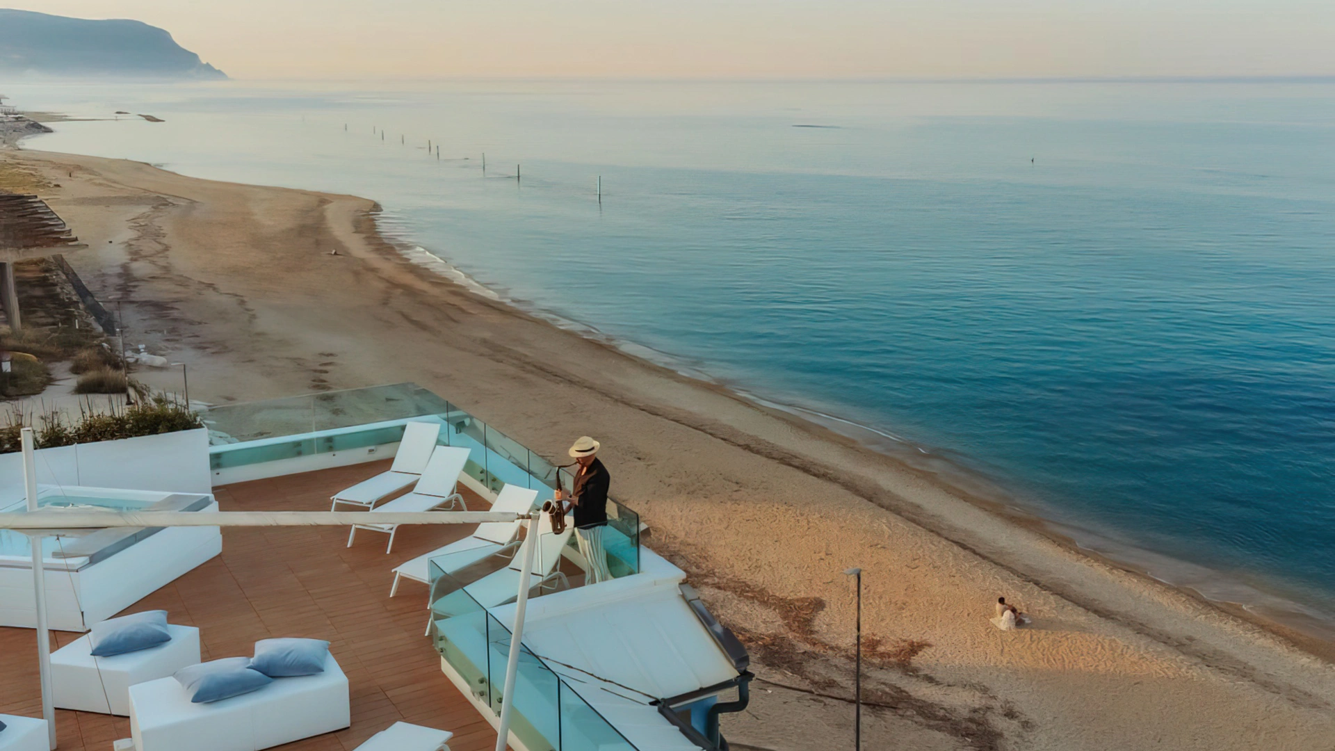 The Life Hotel, 4 stars with a minimalist and elegant design, is located on the seafront of Porto Recanati, and enjoys direct access to the public free beach in front. It offers rooms and suites ideal for both couples and families and has a charming panoramic terrace with solarium and hydromassage tub. There is also private parking, a restaurant and a wellness centre. It allows small and medium-sized pets.