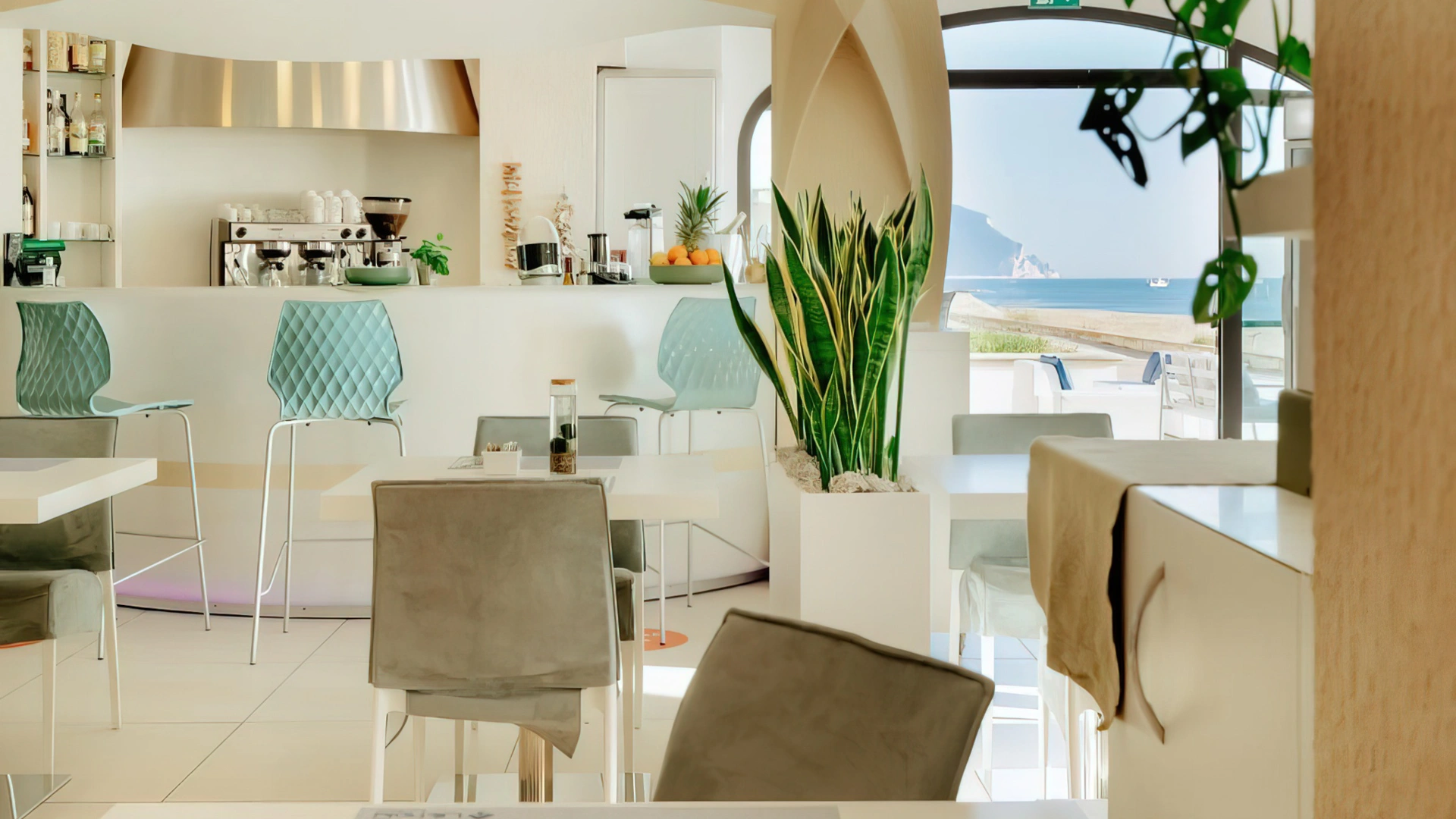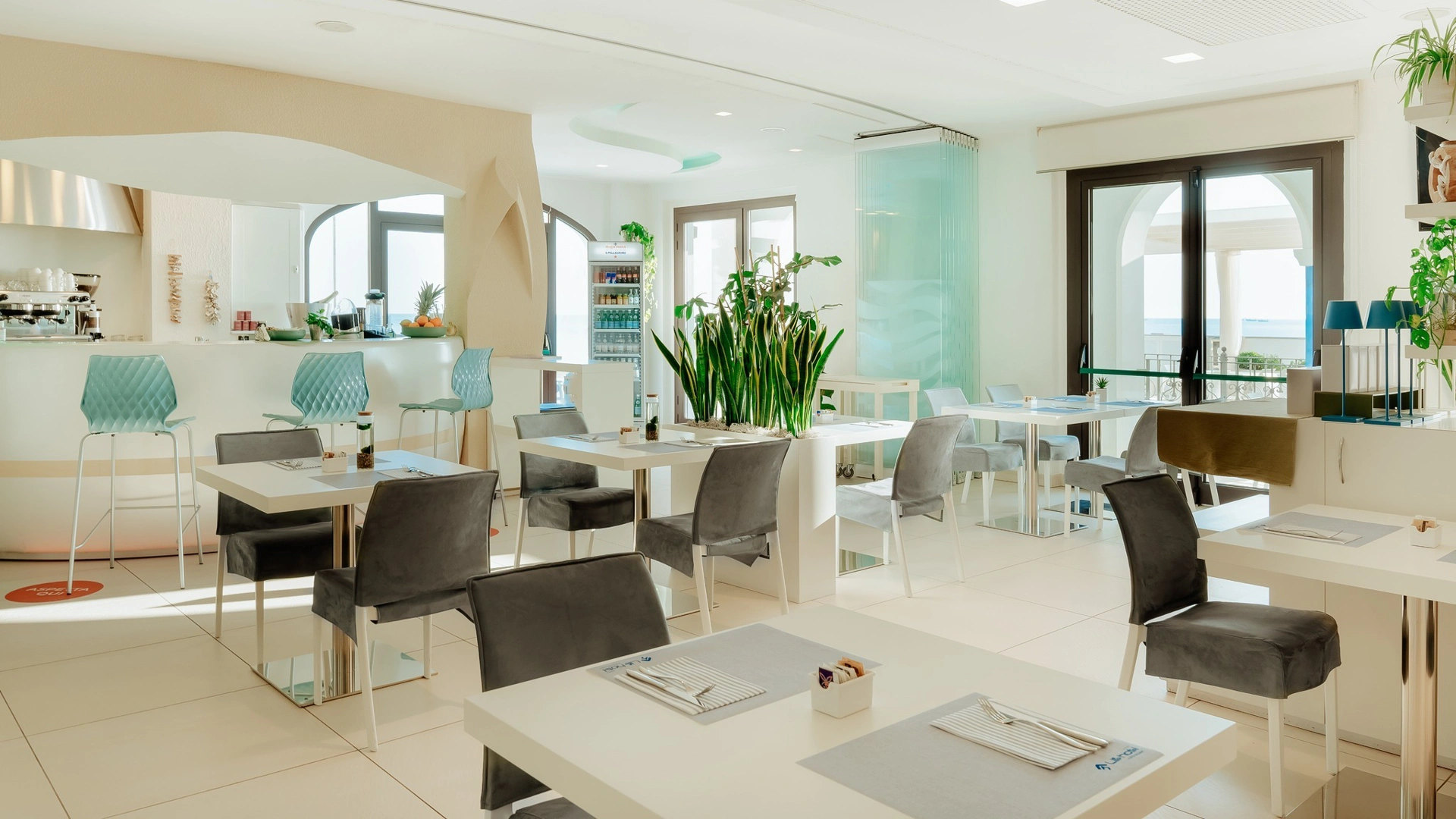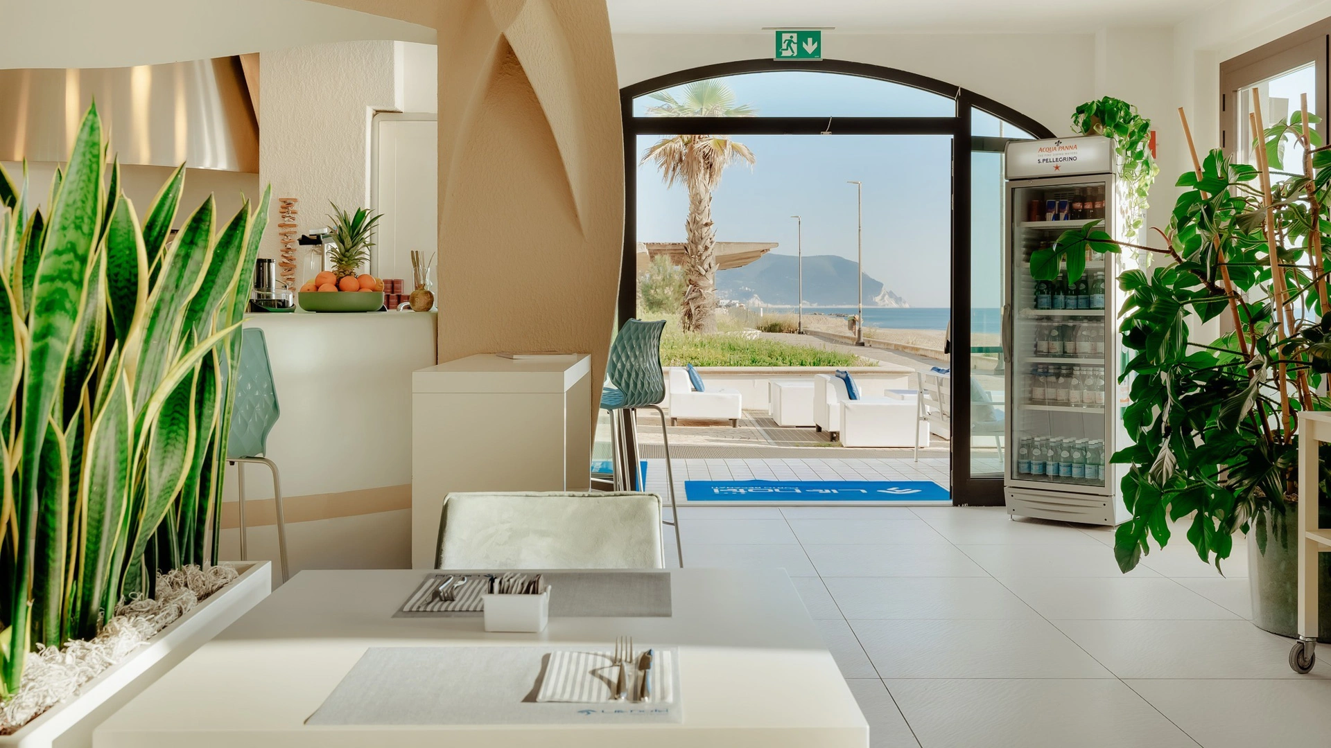 Breakfast includes a sweet and savory continental buffet, served in the large restaurant room overlooking the sea. It is possible to dine with pinsa and various side dishes of internal production. The bar service is also active for aperitifs.
