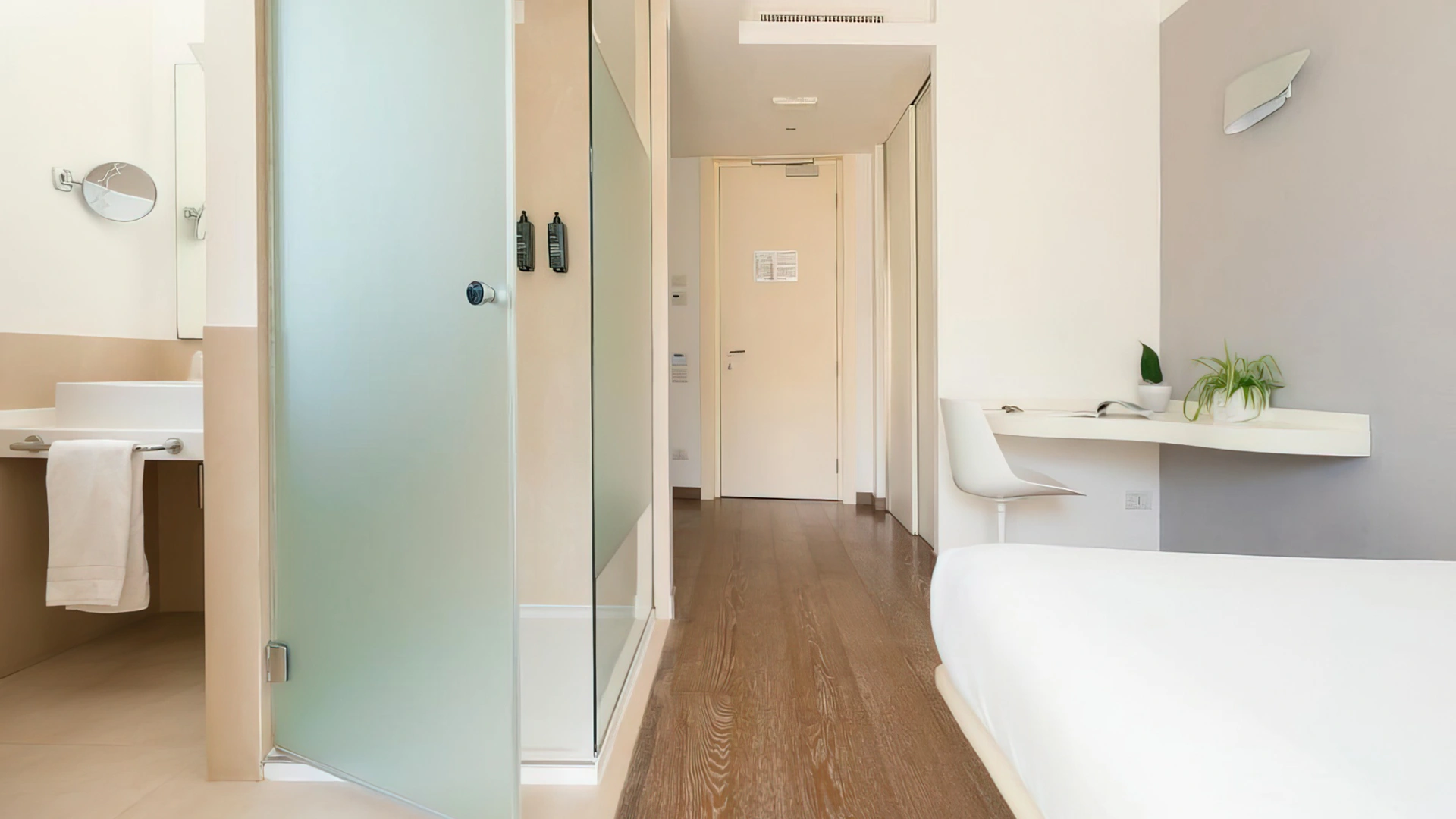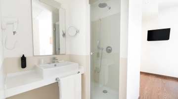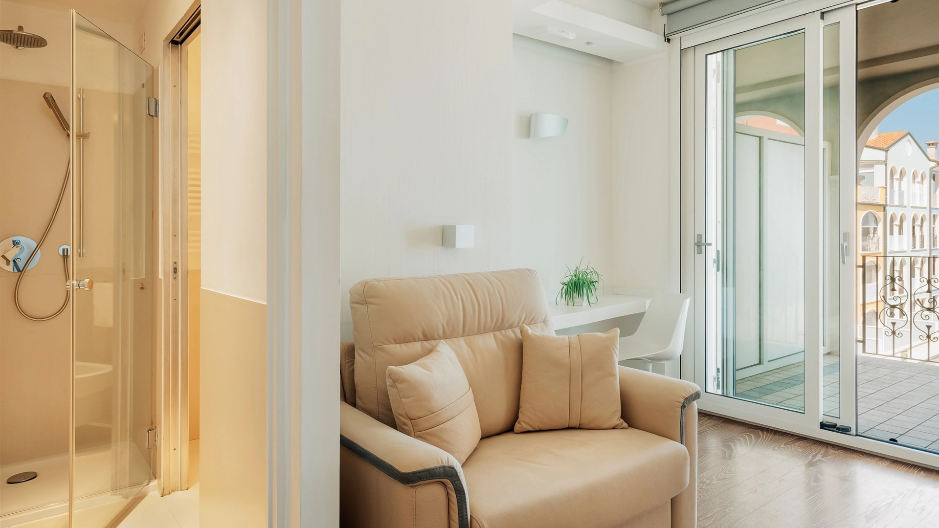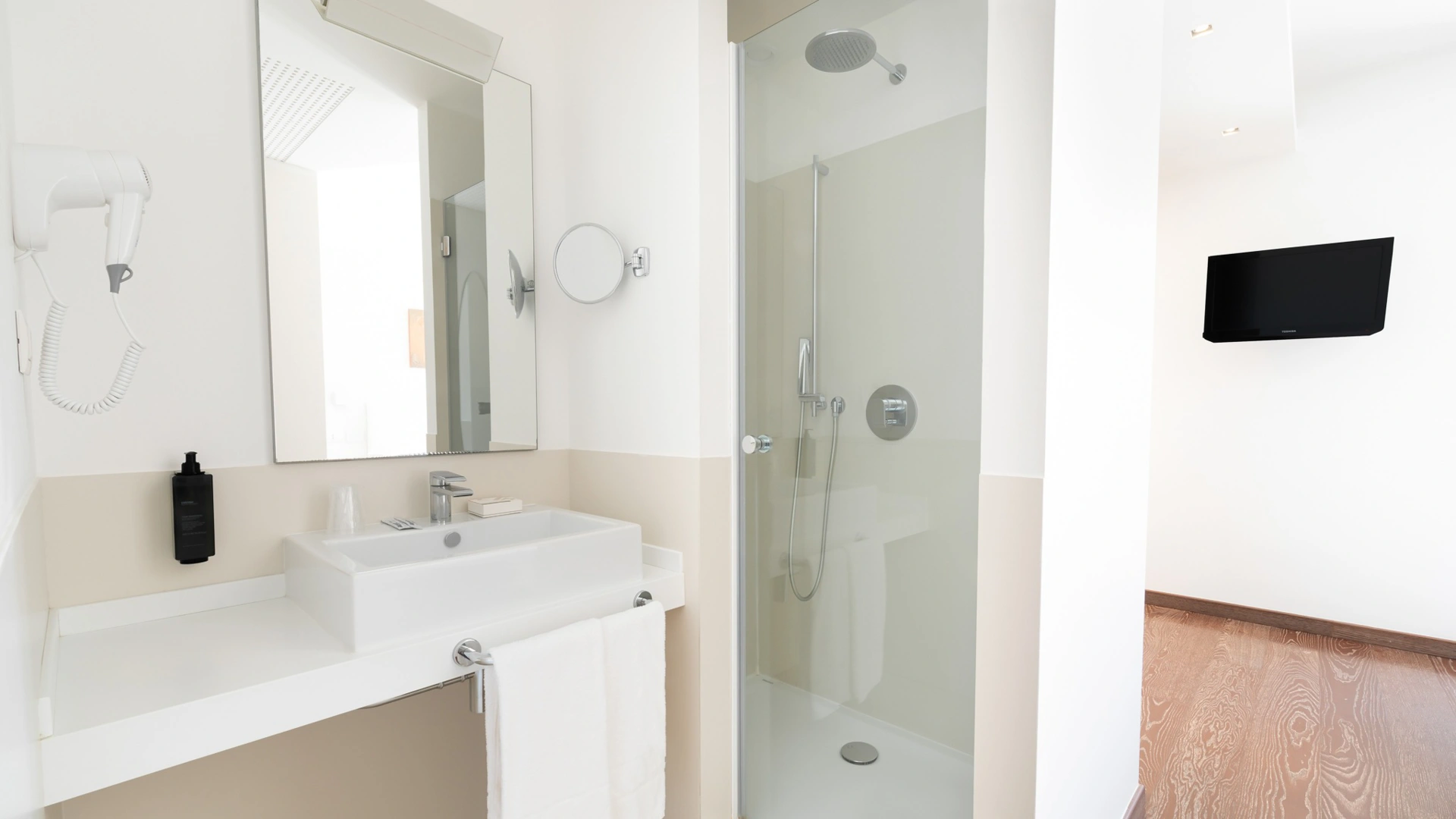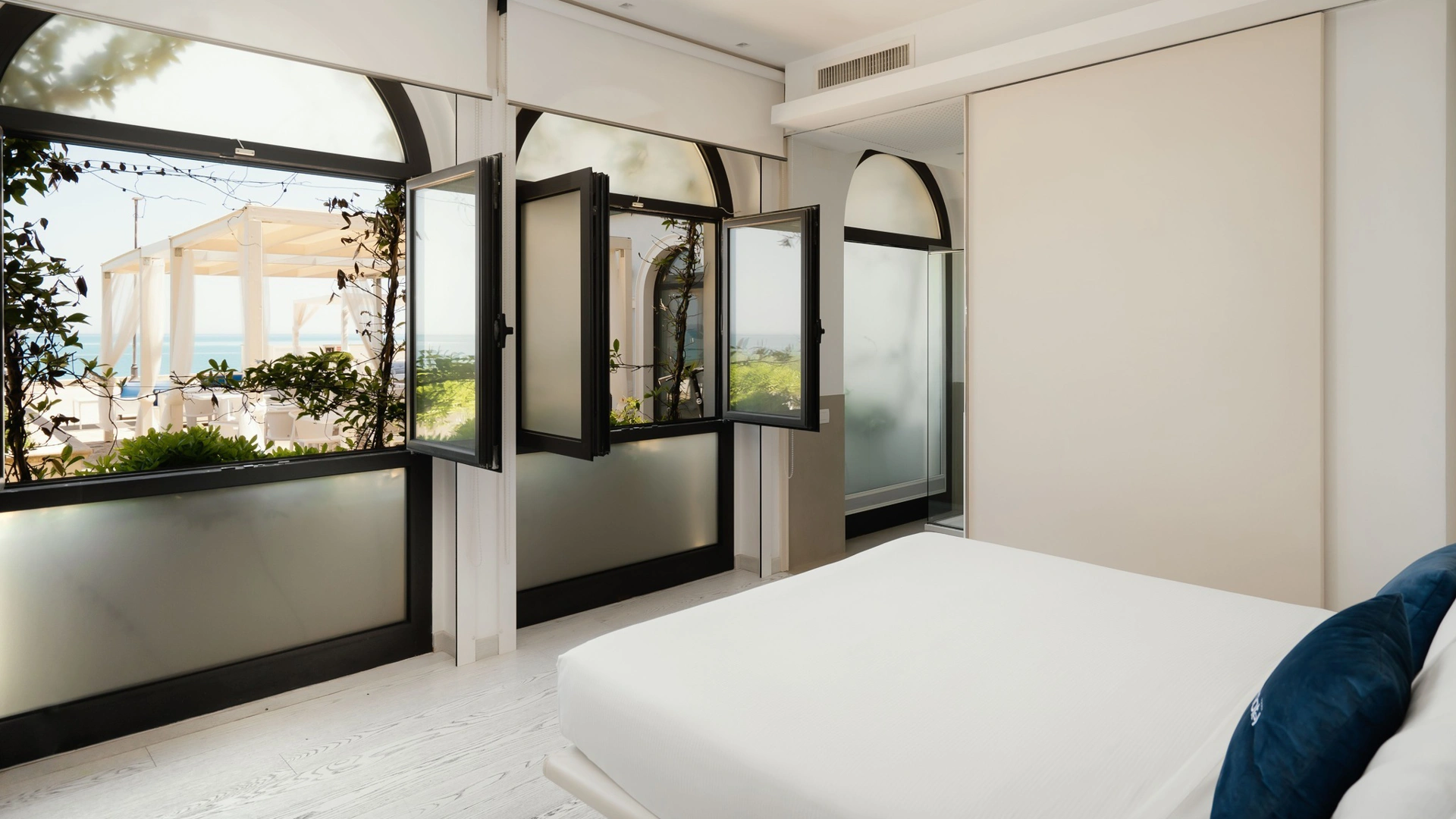 The hotel has rooms and suites, characterized by a minimalist and essential design. Able to accommodate up to 4 people, they are all equipped with a safe, LCD TV, minibar, free Wi-Fi and bathroom with complimentary toiletries, hairdryer and shower. Many rooms have a balcony and sea view. The suites have a living area with a sofa bed and a large furnished terrace.