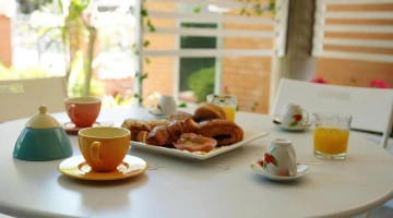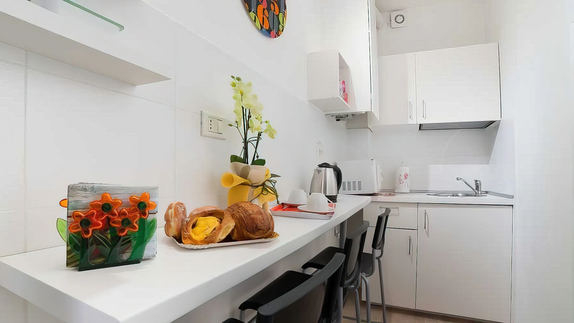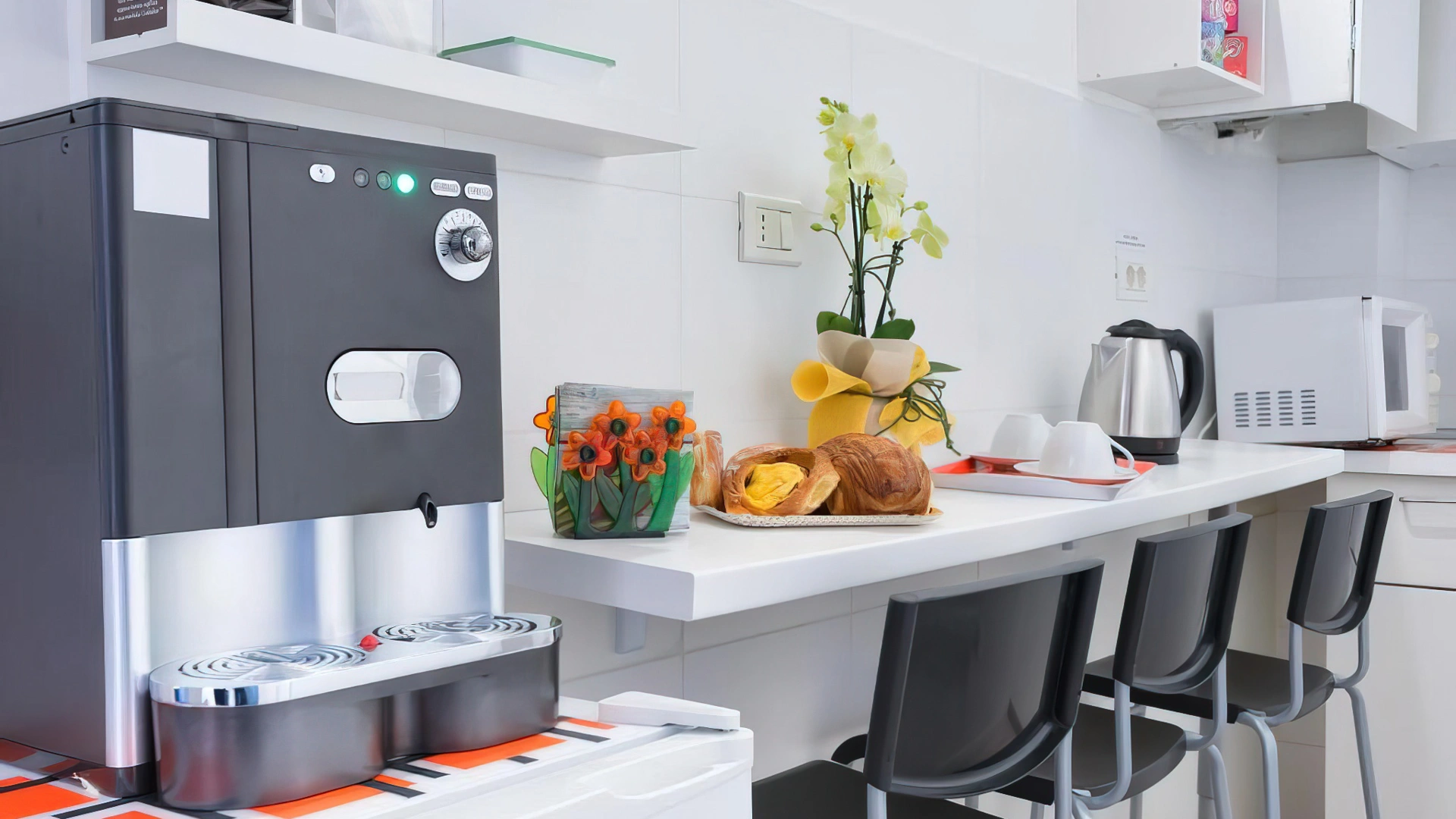 The Italian breakfast can be consumed at a nearby bar. A common dining area with microwave oven, electric kettle, coffee maker, fruit and snacks is available in the structure.