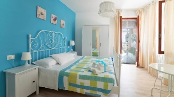 The structure has 2 double bedrooms located on the ground floor with veranda overlooking the garden and a two-room apartment on the first floor with double bedroom and kitchen for private use. The 3 accommodations are bright and characterized by modern and refined furnishings. All are equipped with a flat-screen TV, Wi-Fi, air conditioning and a private bathroom with shower, hairdryer and free toiletries.