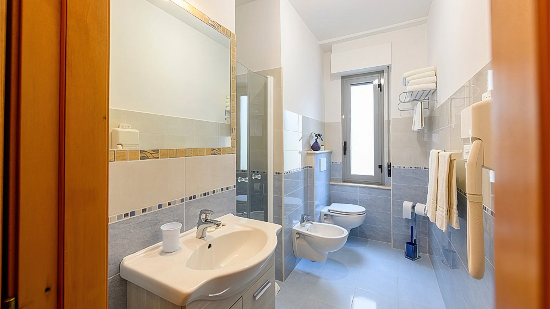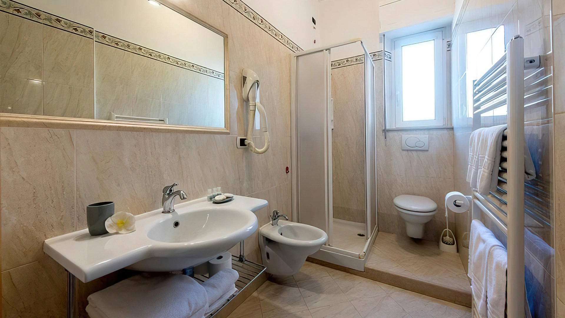The rooms have a balcony, air conditioning, Wi-Fi connection, TV, safe, telephone, minibar (not stocked). Each accommodation is equipped with private bathroom complete with shower, hairdryer and courtesy set.
