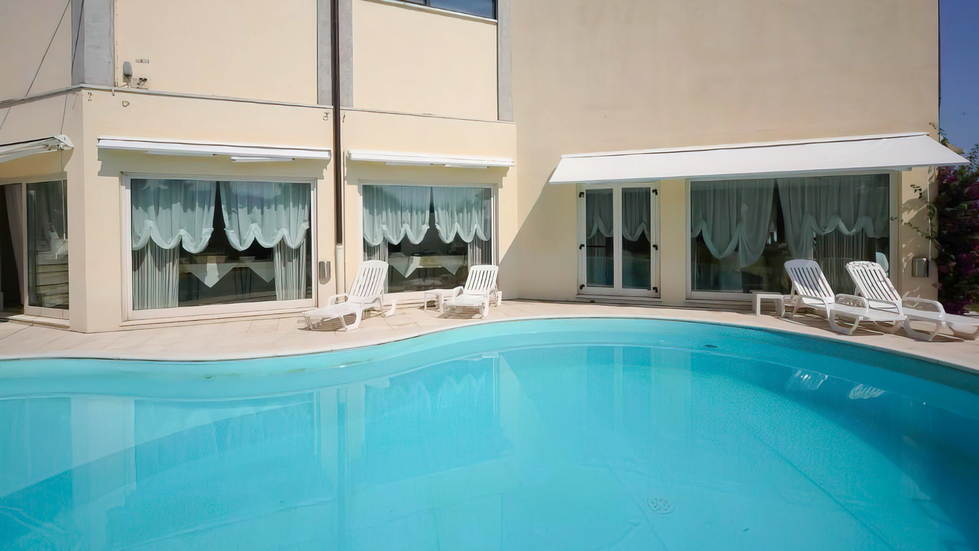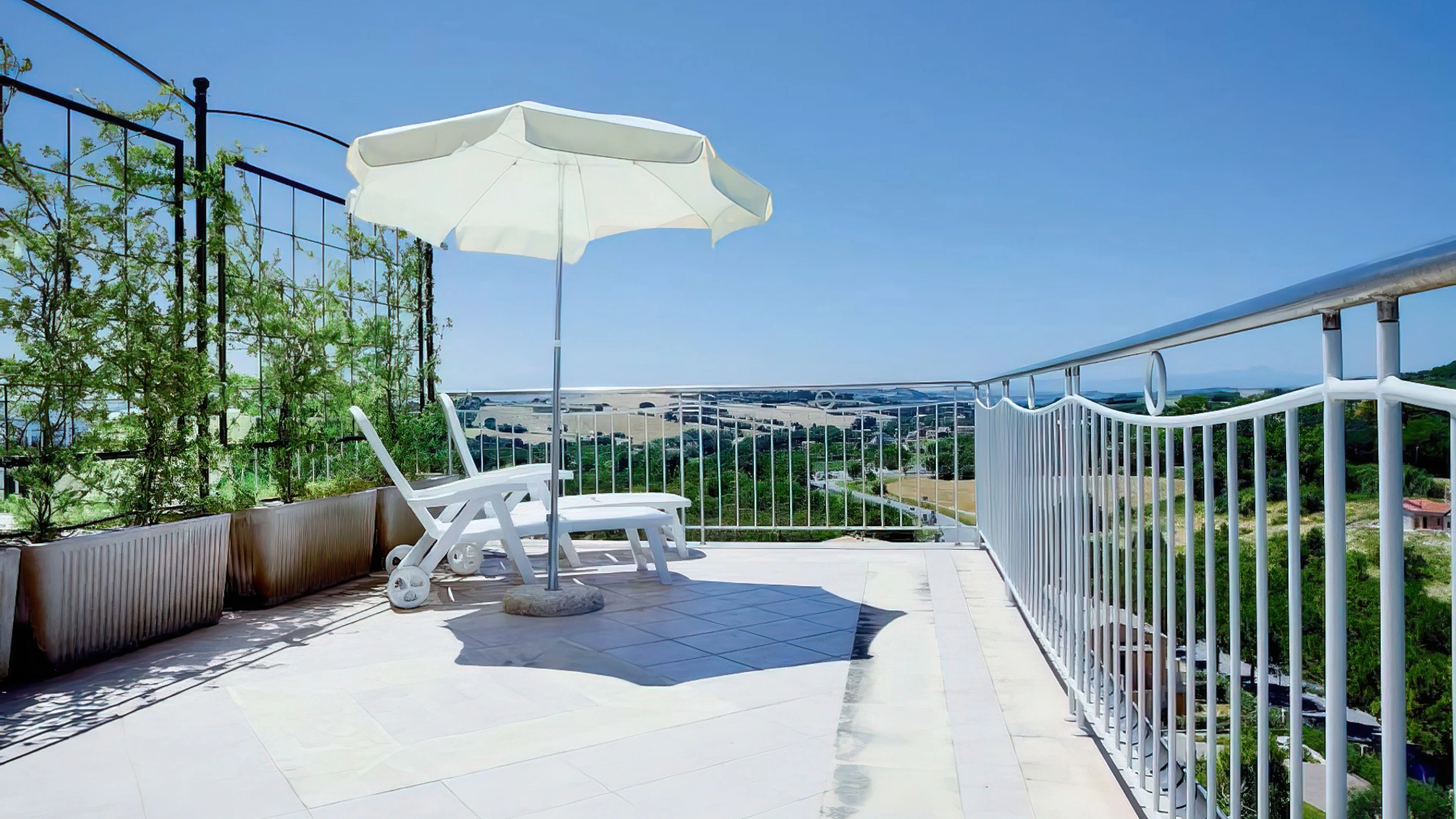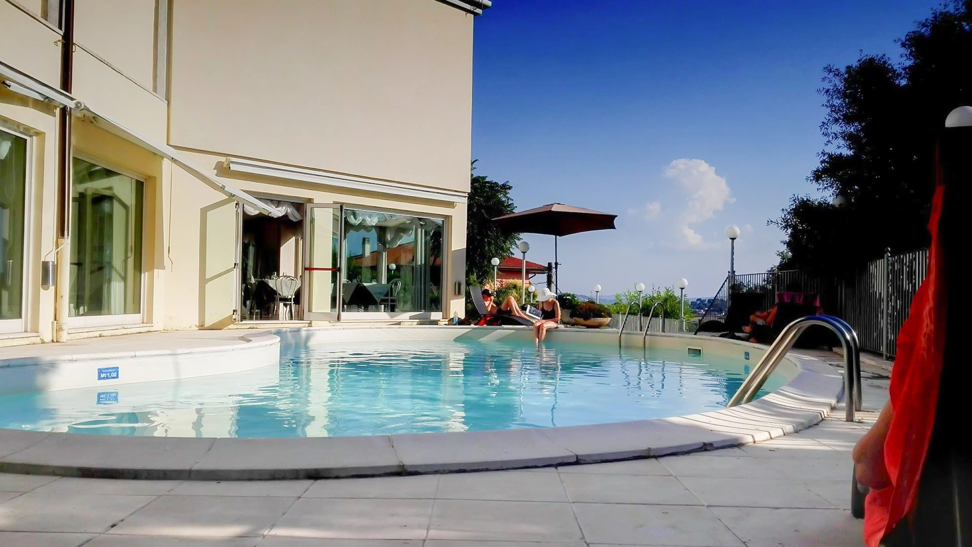 The panoramic terrace houses the outdoor salt water swimming pool, which can be used during the summer. Surrounded by sunbeds and umbrellas, it offers a shallow water area. It is possible to have meals and aperitifs by the pool.