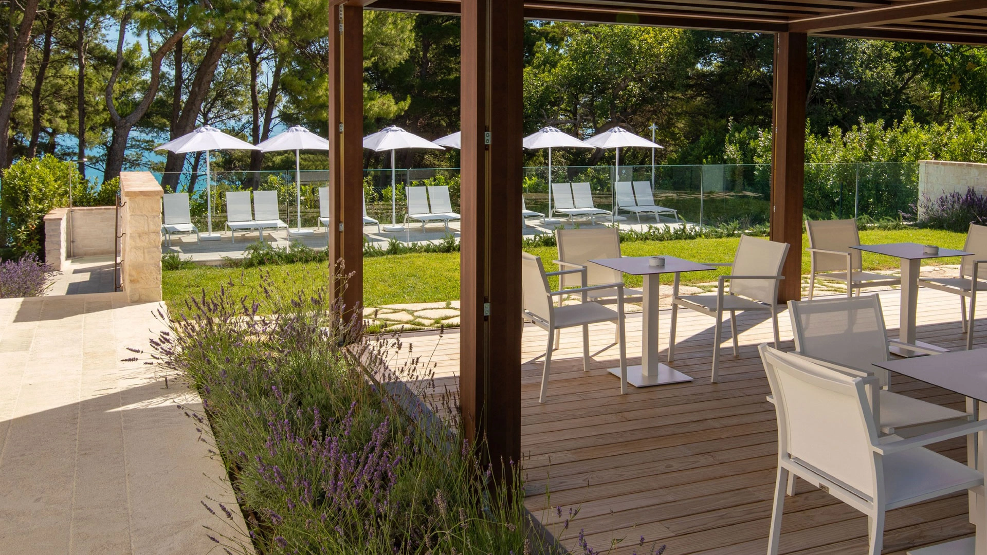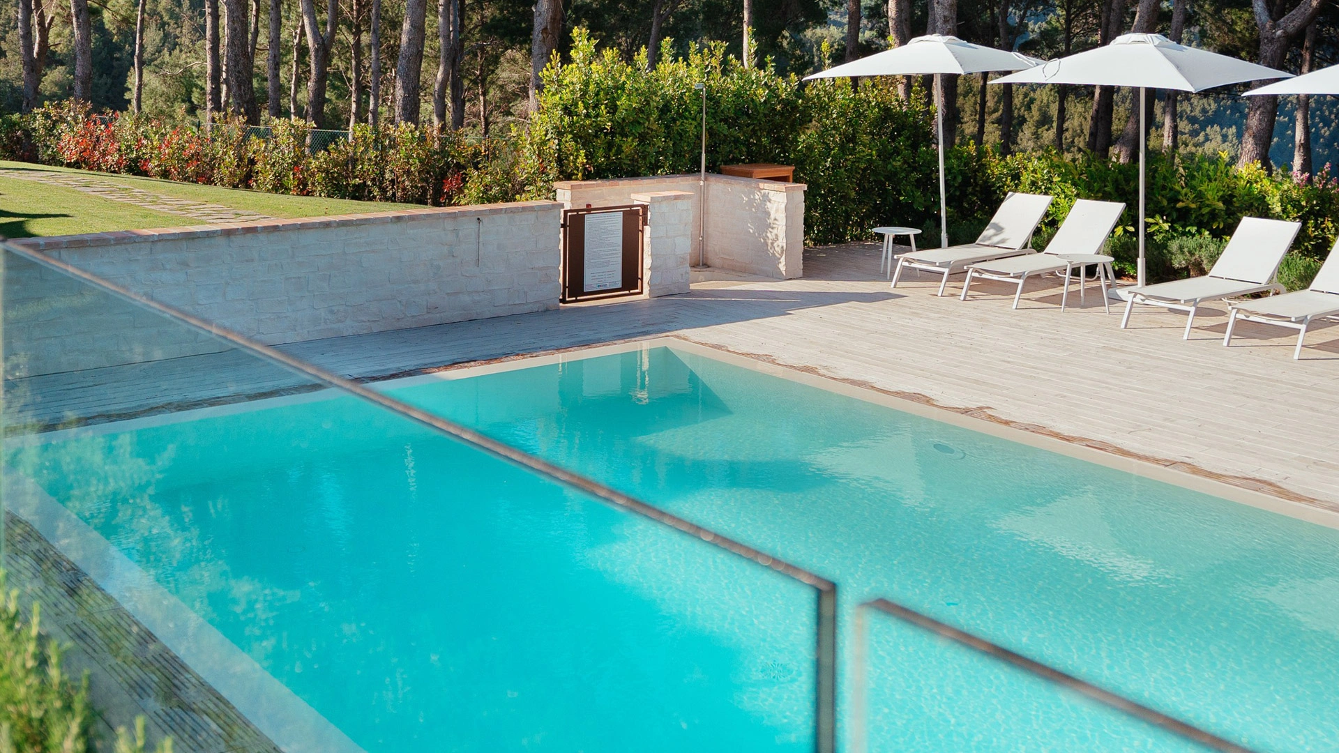 Located on the natural terrace facing the garden, umbrellas and umbrellas are available for customers. The swimming pool is exclusively open to the warm water and is accessible to children as well.