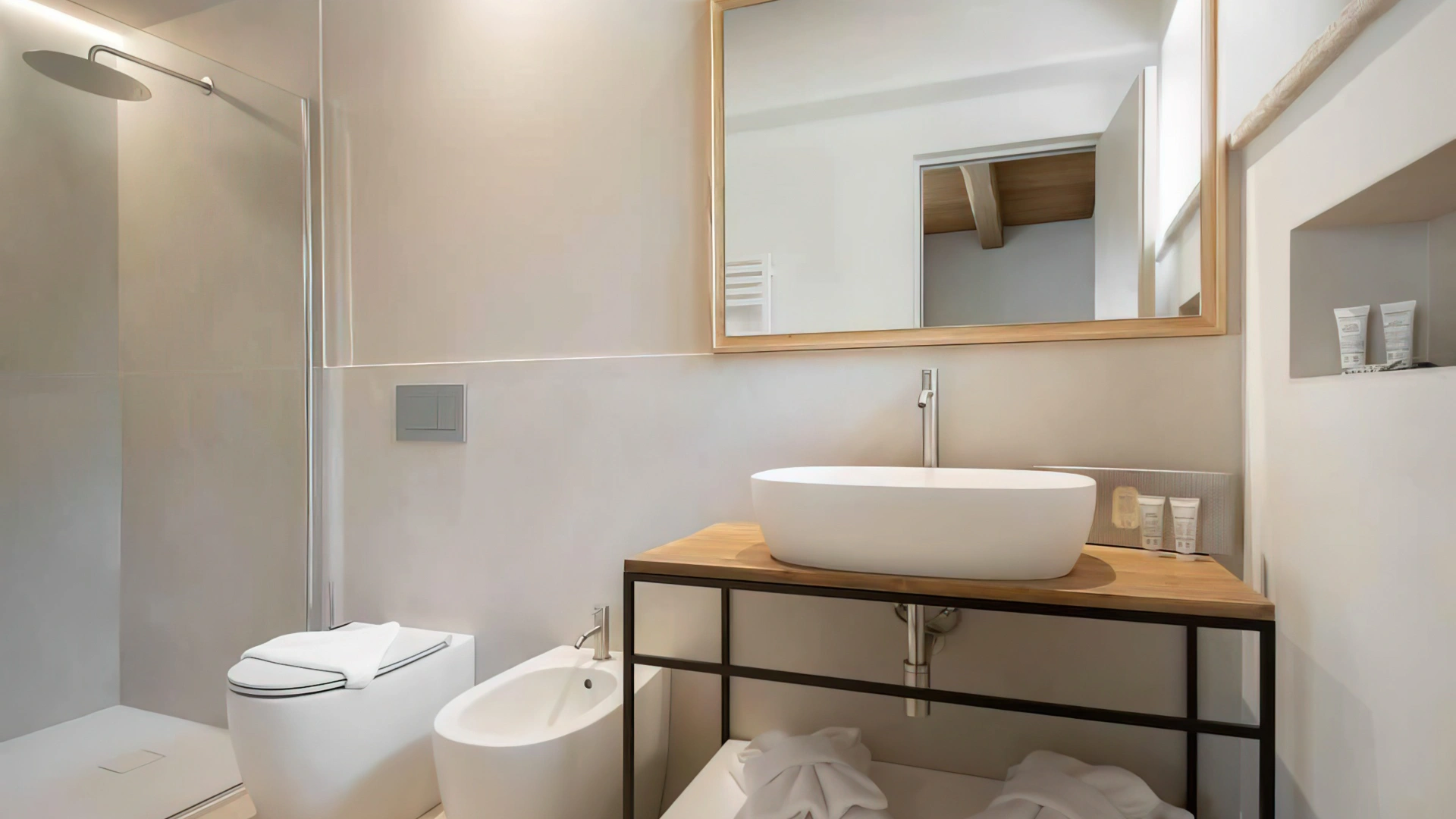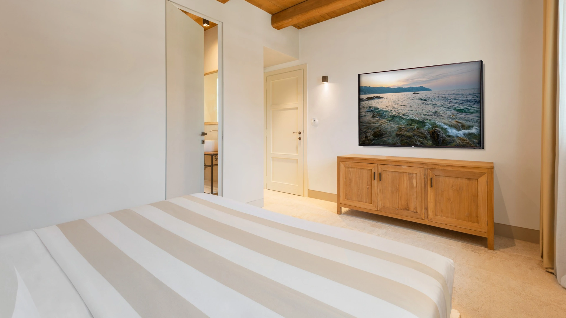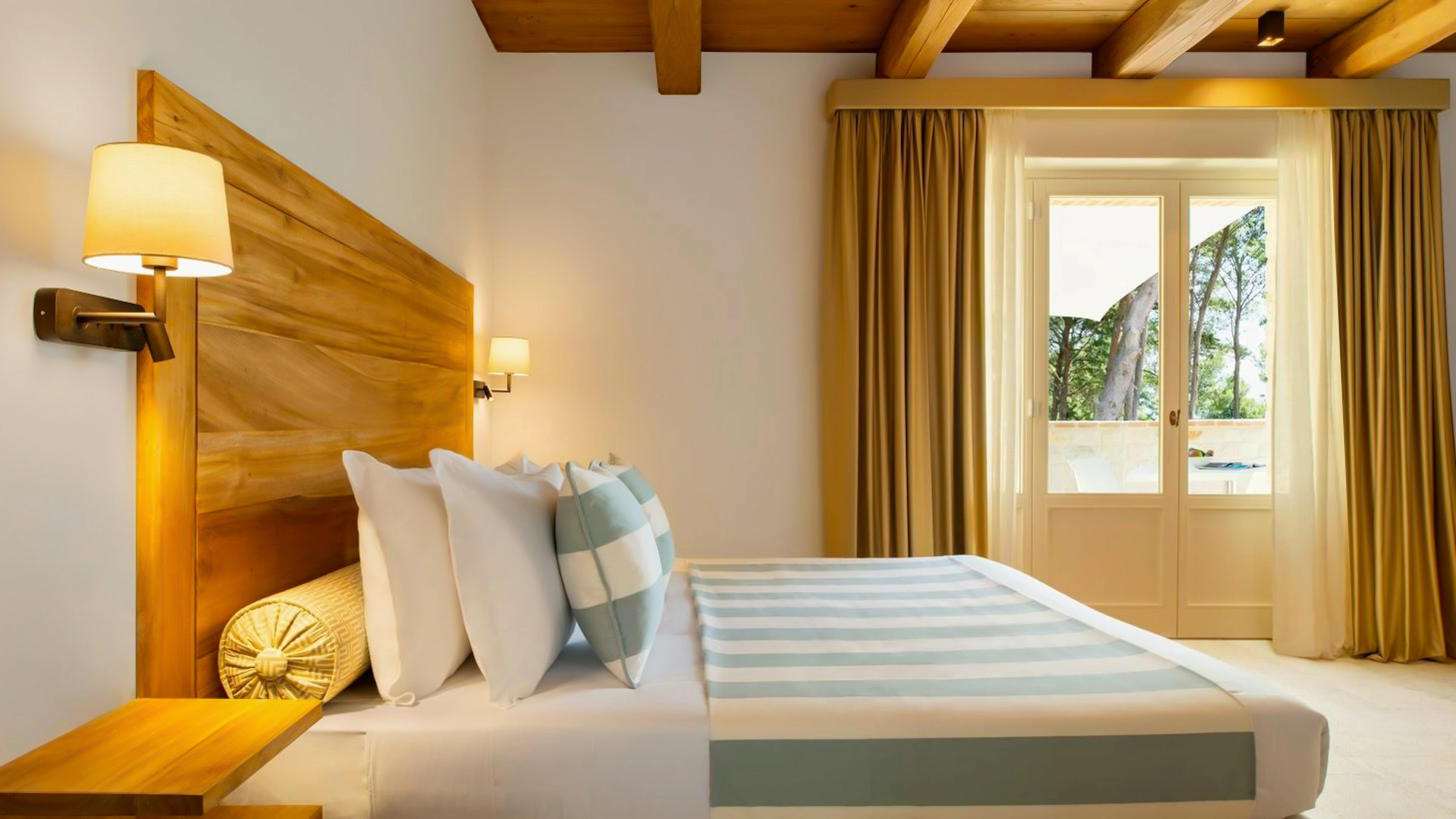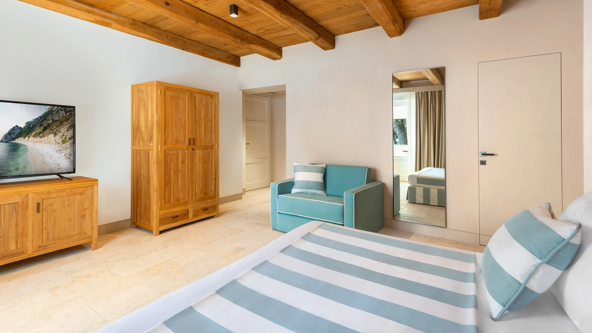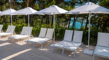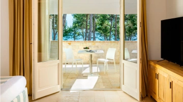 San Michele Relais & Spa has double rooms characterized by fine finishes such as the limestone floors characteristic of the Conero and the exposed wooden beams of the ceilings. All rooms, in the Standard or Deluxe category, are equipped with independent air conditioning, Smart TV with Sky channels, Wi-Fi connection, safe, minibar, telephone and bathroom with shower cubicle, courtesy set, bathrobe and hairdryer. Some rooms, located on the ground floor, have a private patio; others enjoy a sea view on the San Michele beach below.