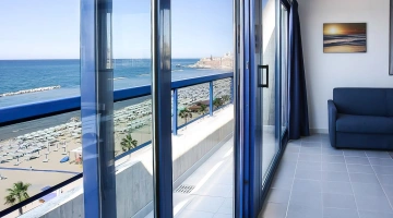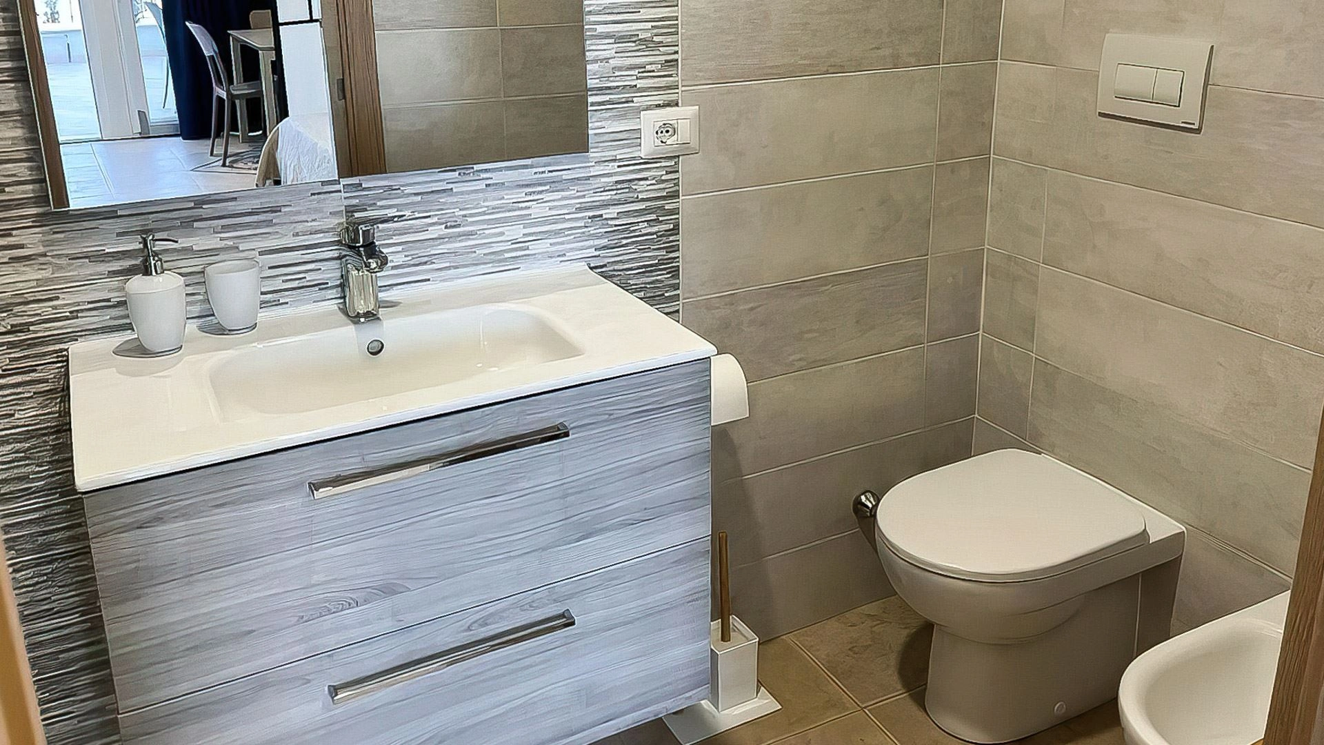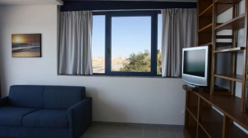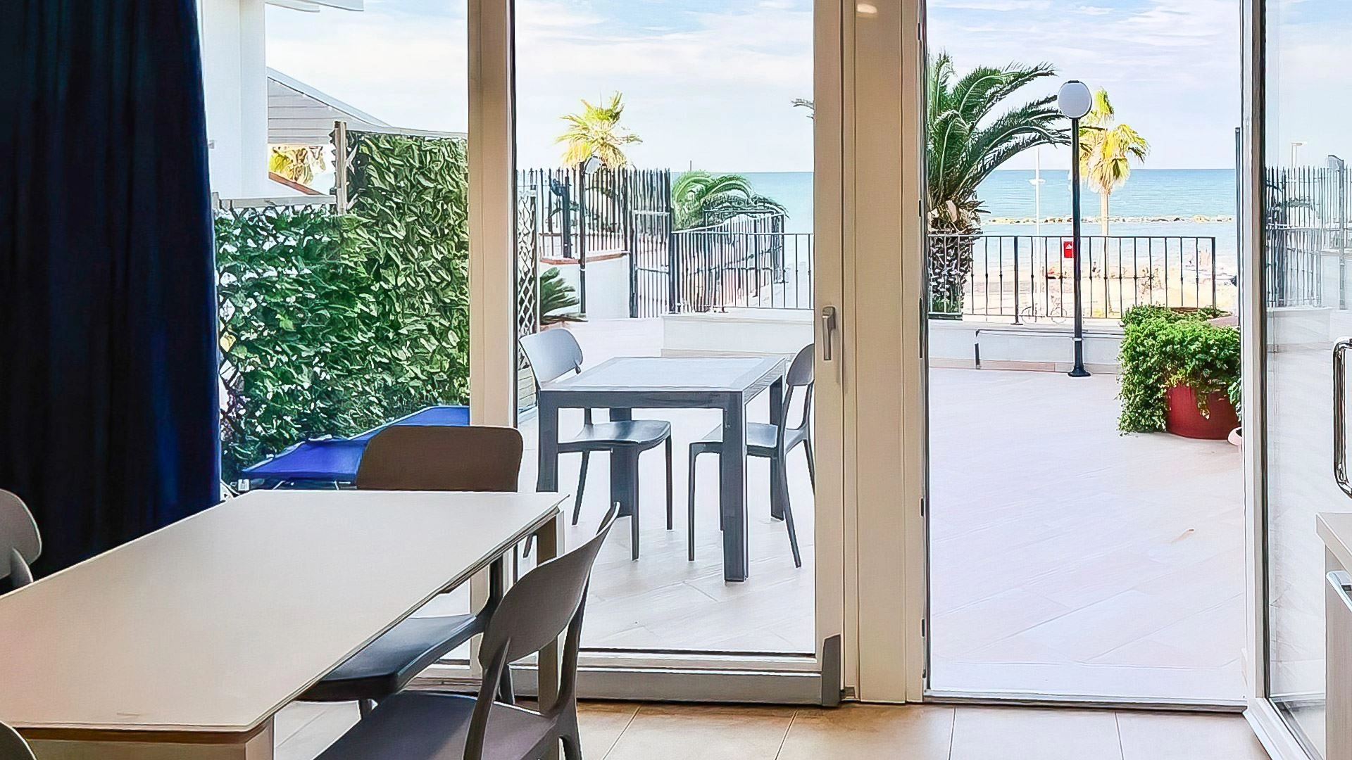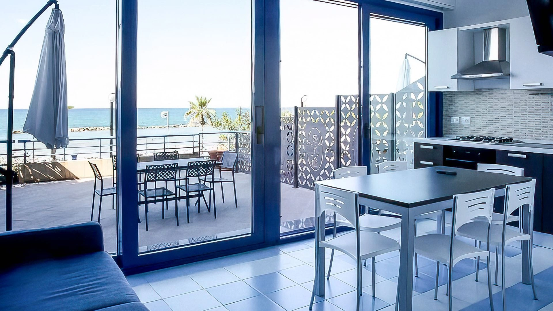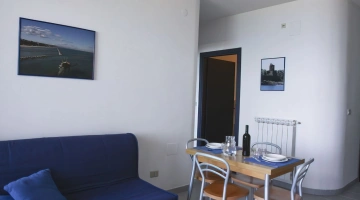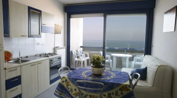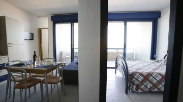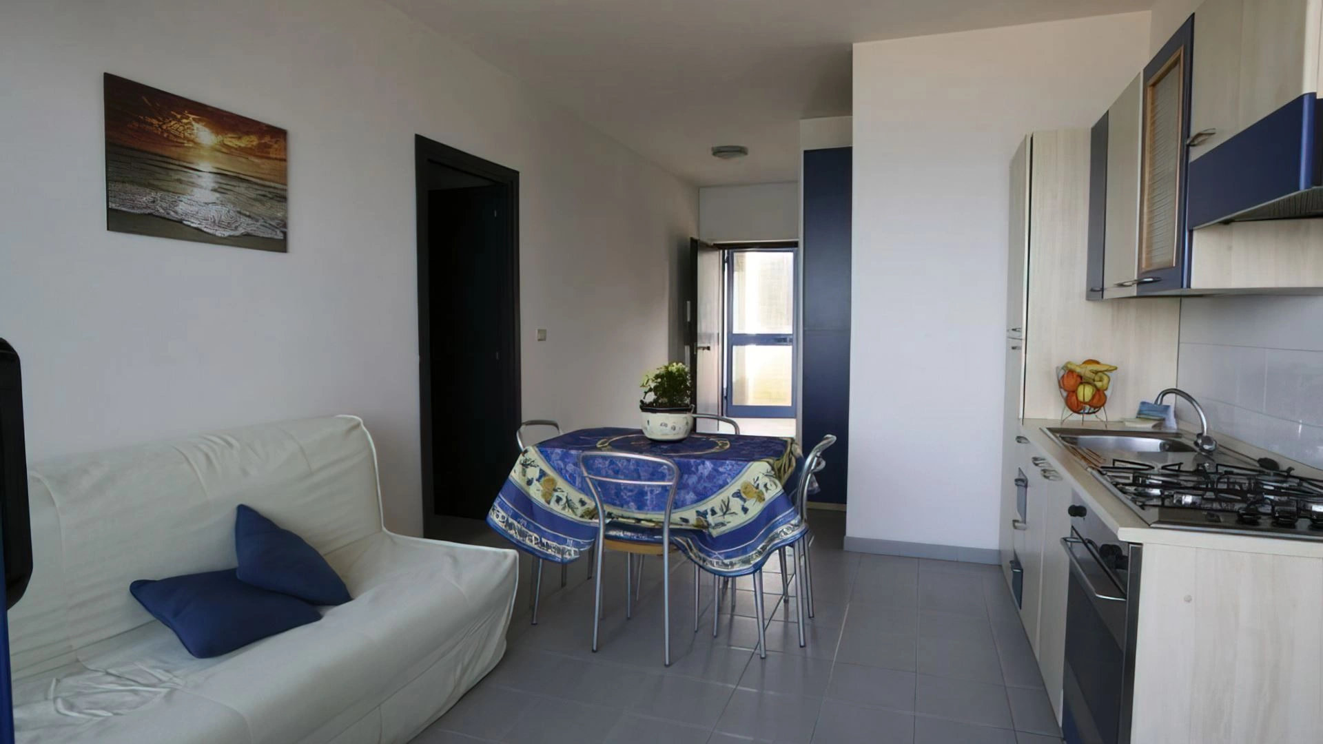 The apartments, which can accommodate from 2 to 6 people, are equipped with a balcony, equipped kitchen, Wi-Fi connection, bathroom with shower and hairdryer, washing machine and air conditioning in the sleeping area. There are Superior type accommodations equipped with air conditioning also in the living area, dishwasher and sea-view terrace furnished with sunbeds, umbrellas, tables and chairs.