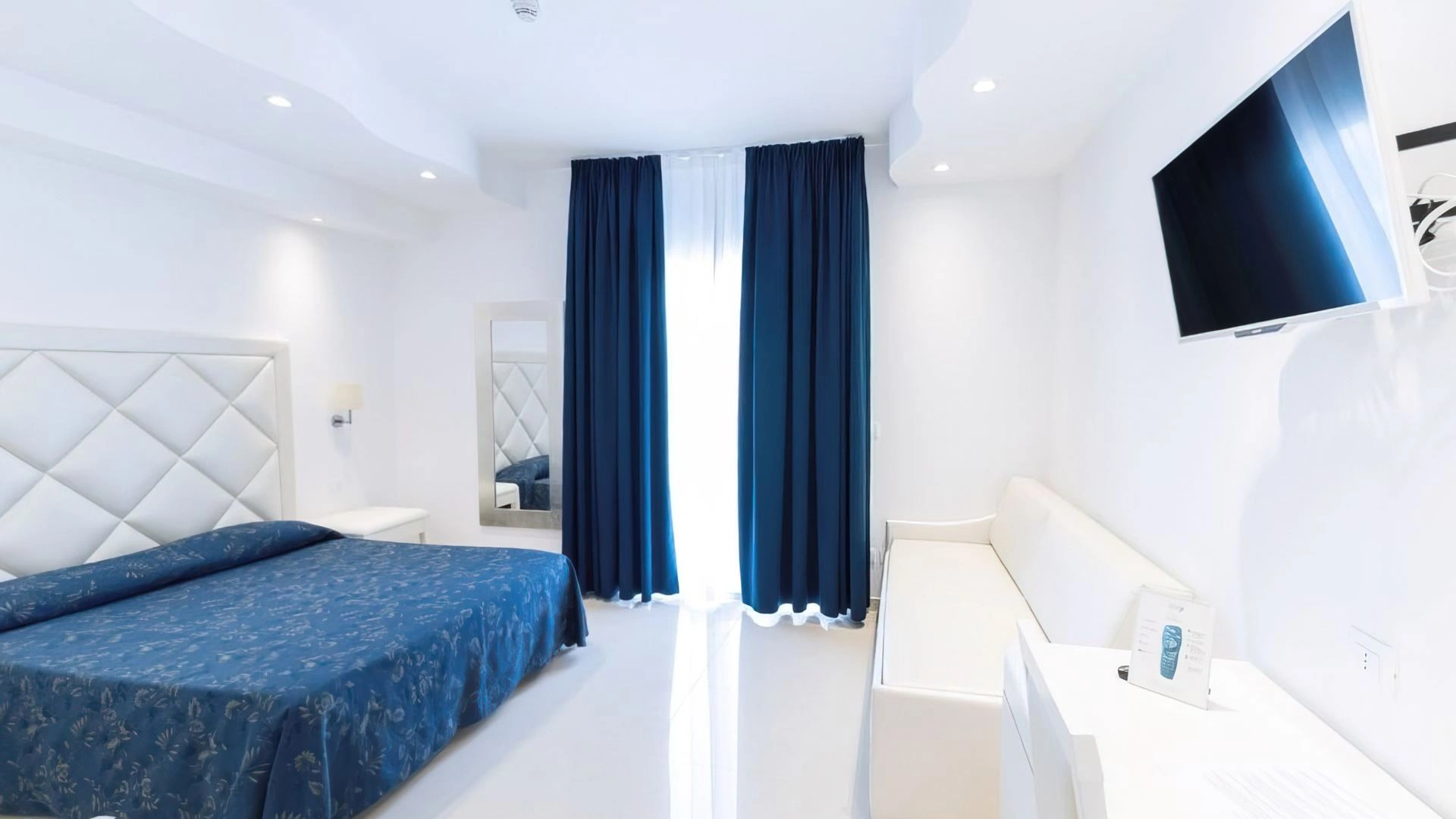 All rooms are equipped with air conditioning, Wi-Fi, TV, safe, telephone, minibar, balcony, bathroom with shower and hairdryer. Some rooms have sea views.